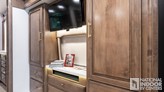 Bar area with beverage chiller and rain glass upper cabinet door with LED accent lighting (45R only)
