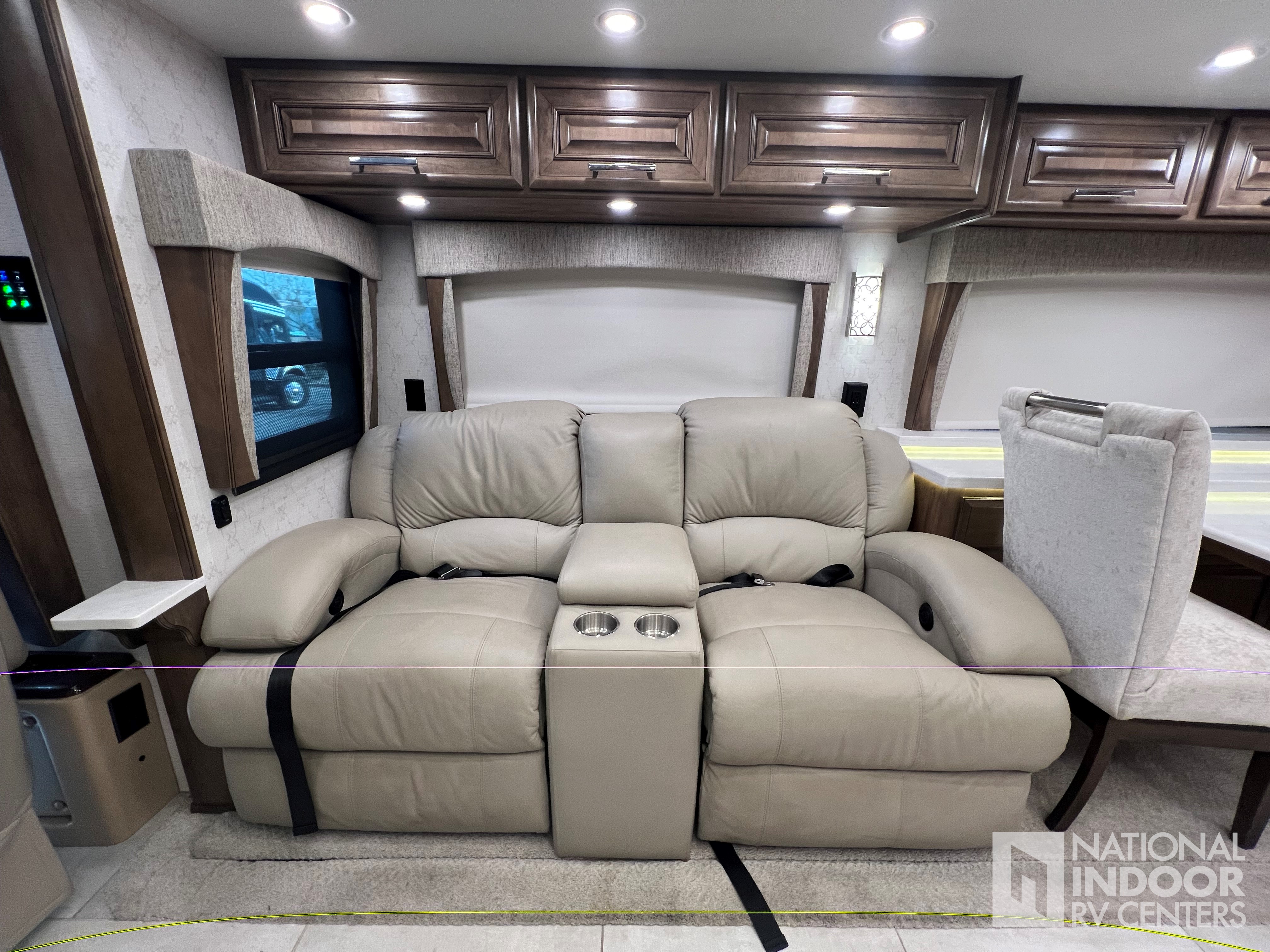 Entegra-exclusive Relia-Torque flush-mounted 12V slideout system with VegaTouch and rocker switch controls