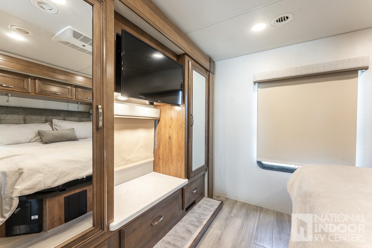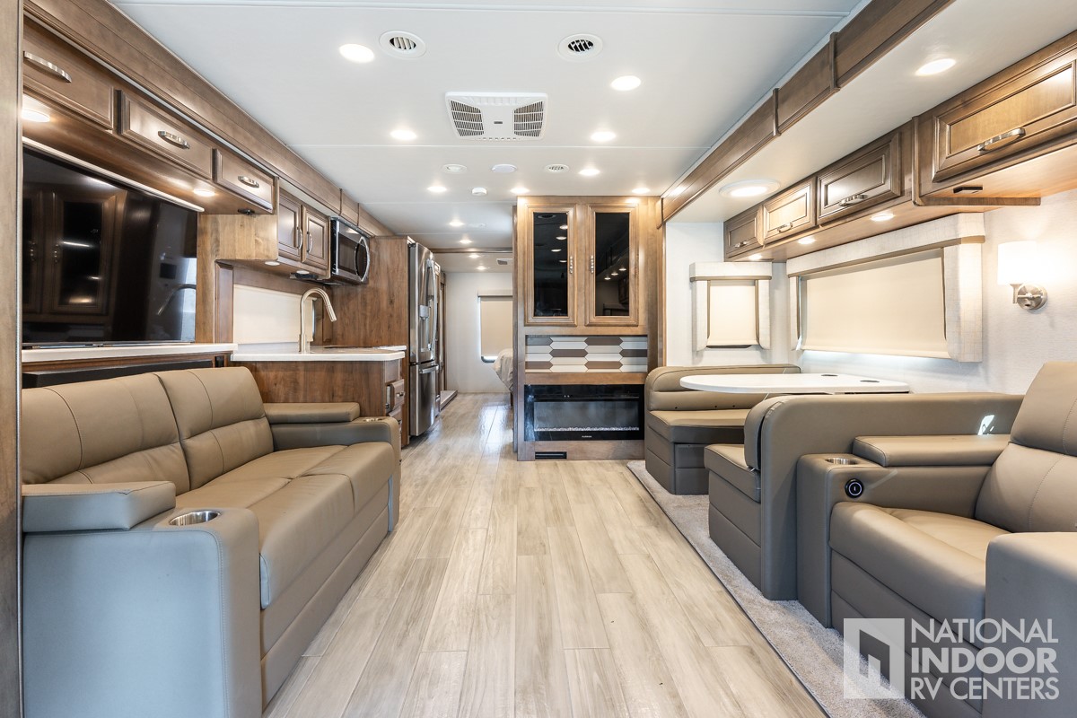 Theater Seats, Booth Dinette, 200W Solar, Full-Body Paint, Auto Leveling Jacks, Alcoa Wheels, Induction Cooktop, E-Z Drive, Girard Awning, Hydronic Heating, Dual-pane Windows, Bunk Over Cab!