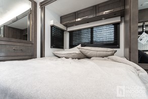 • One-piece, seamless fiberglass front cap; Automotive-bonded panoramic window in front cap with power shade