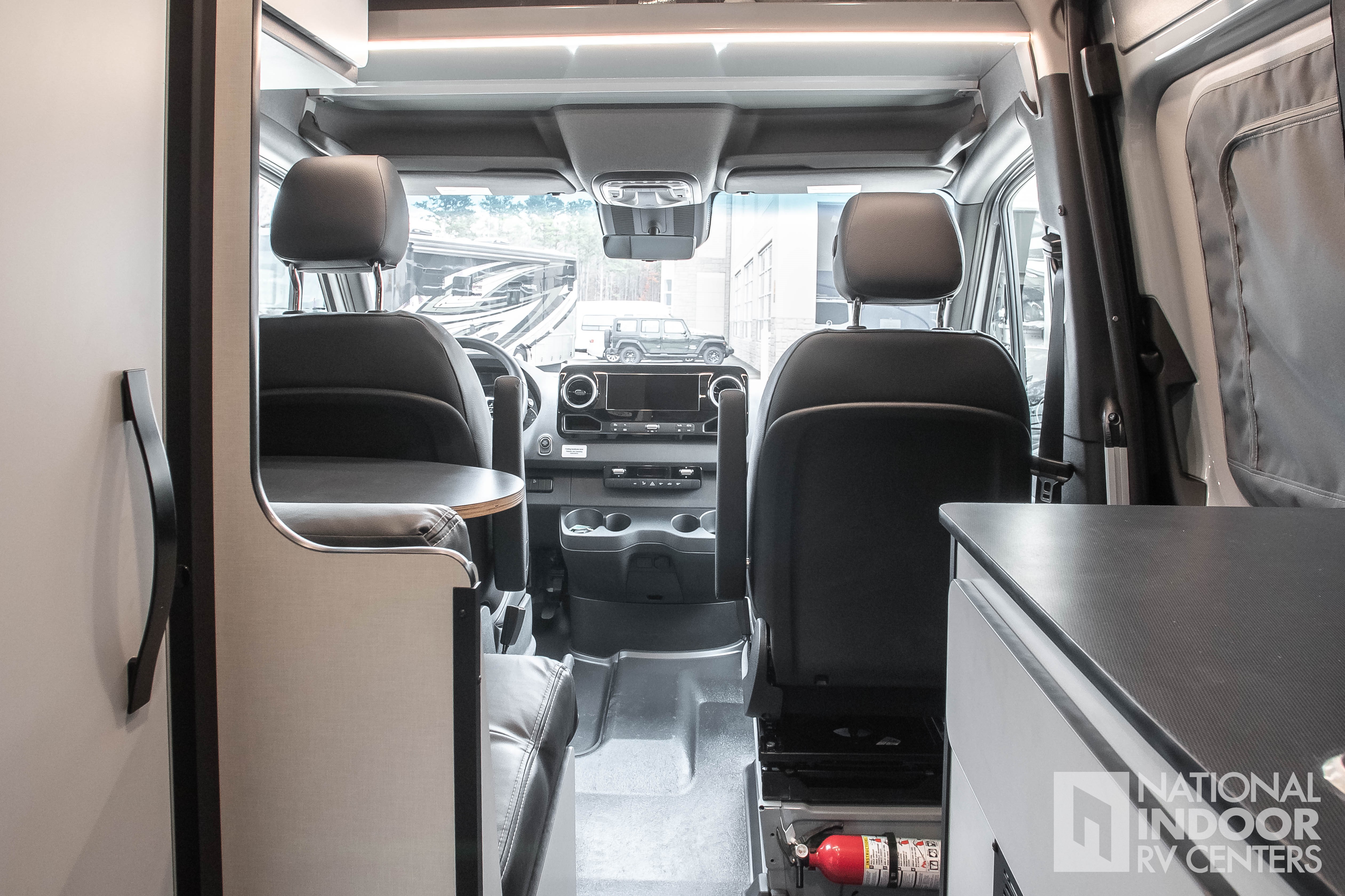 • Folding privacy shades for front and cab door windows
