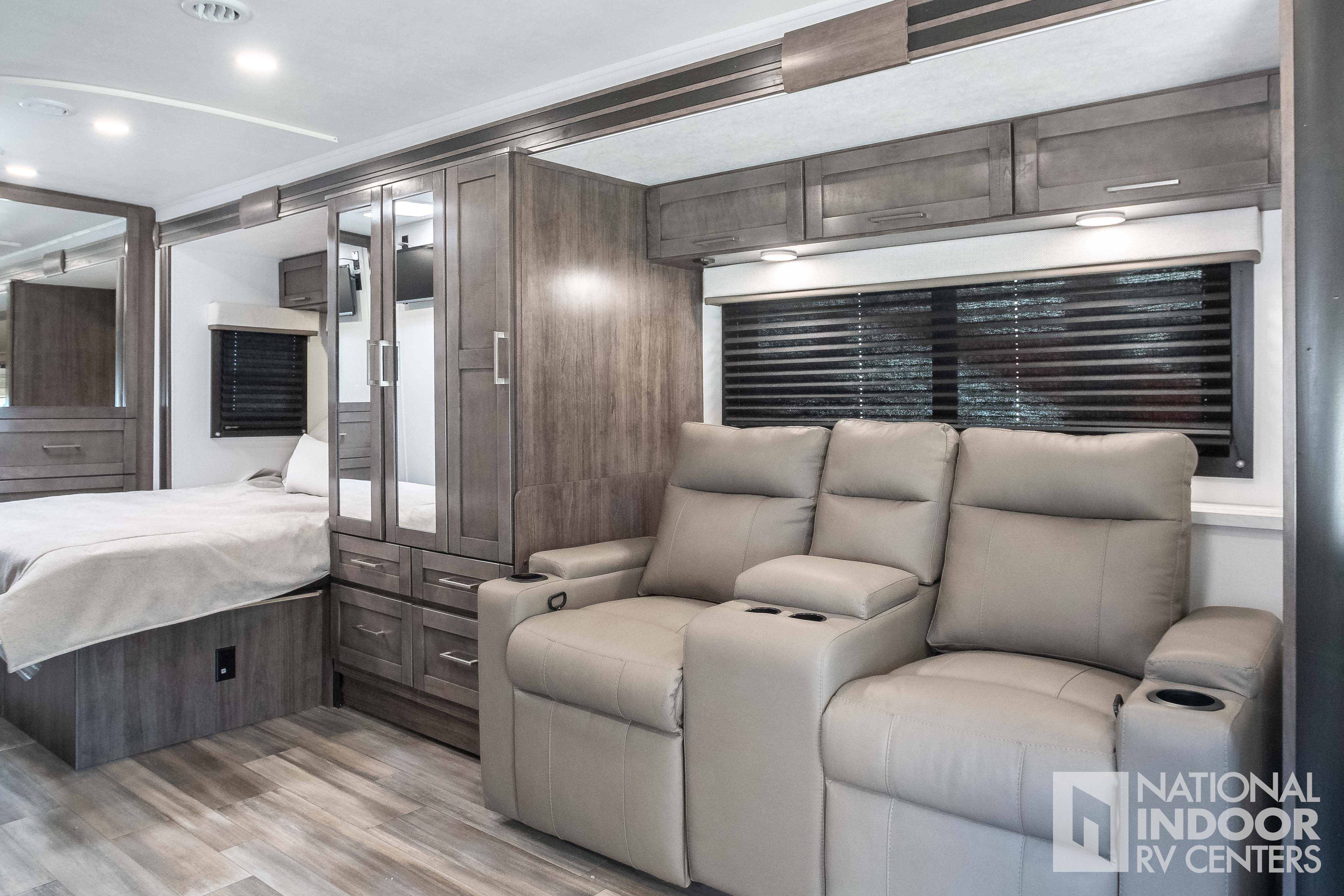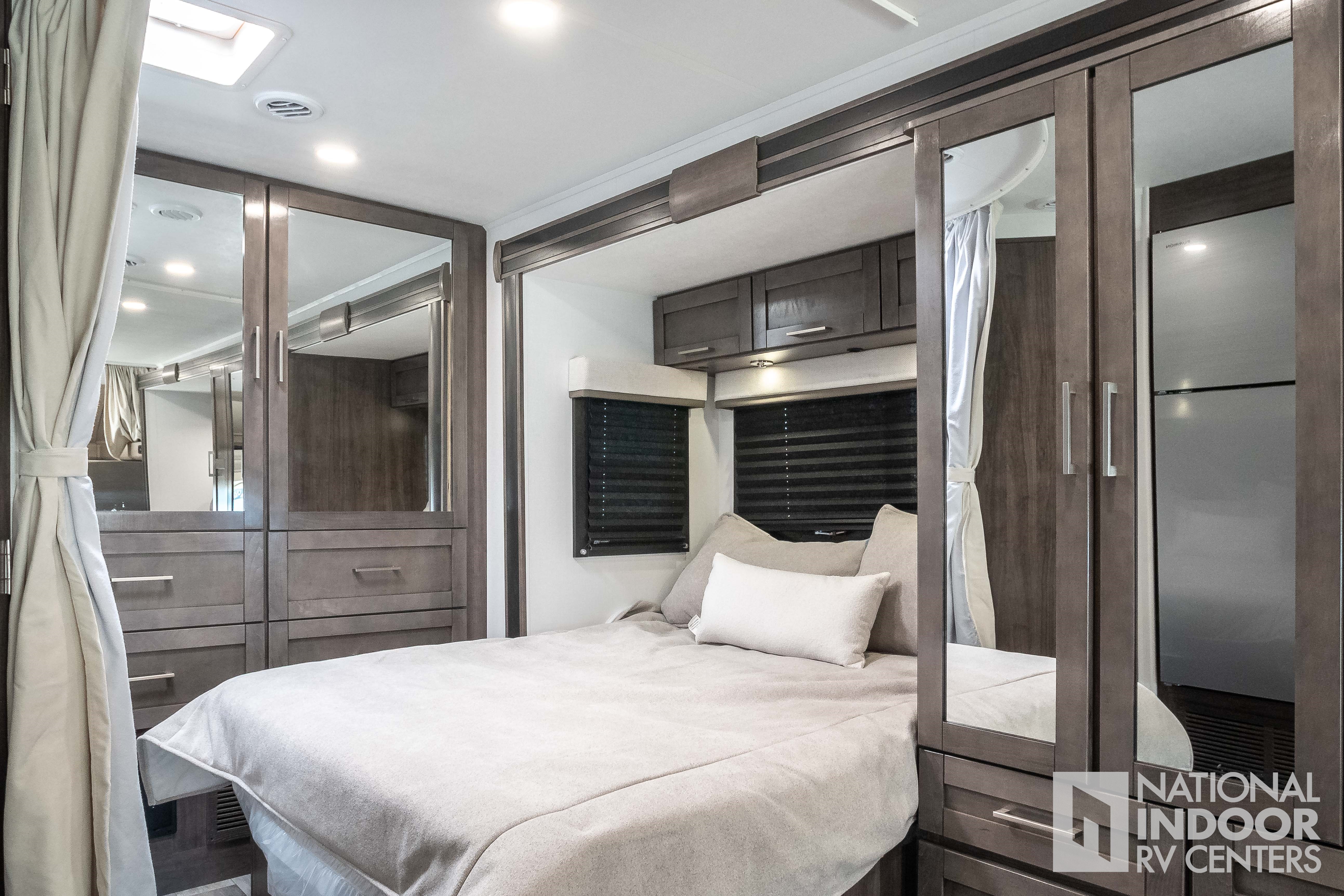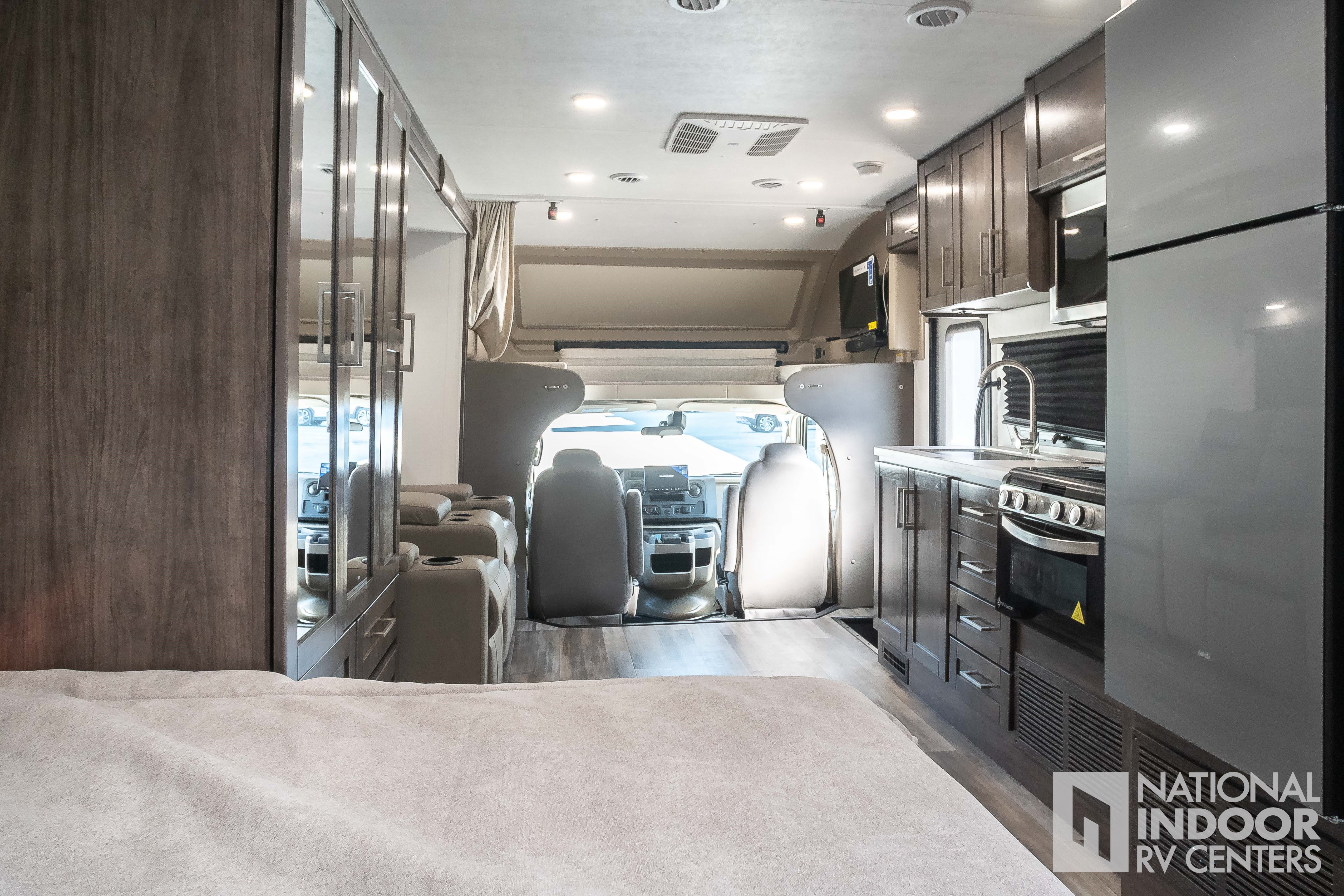 • One-piece, seamless fiberglass front cap; Automotive-bonded panoramic window in front cap with power shade