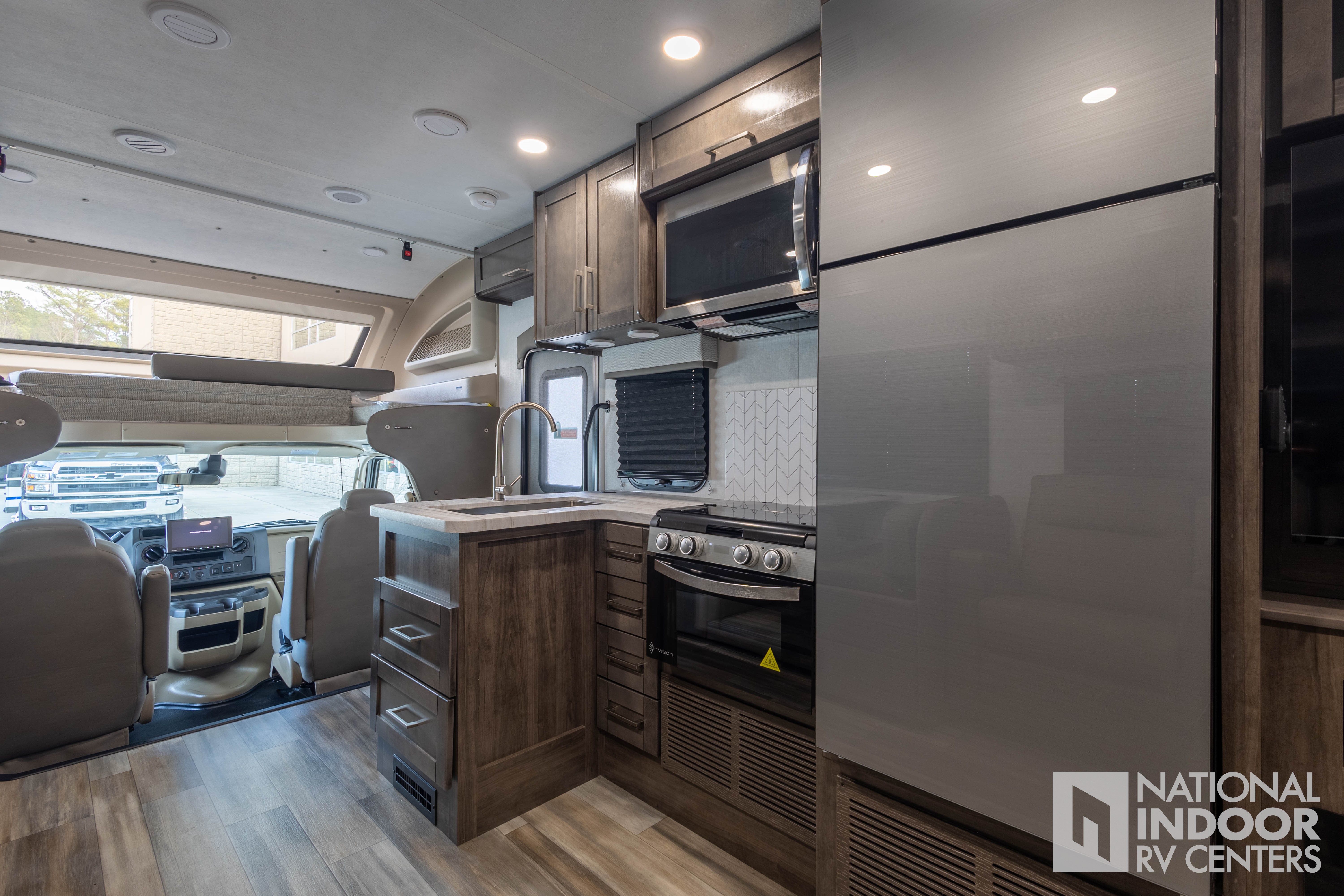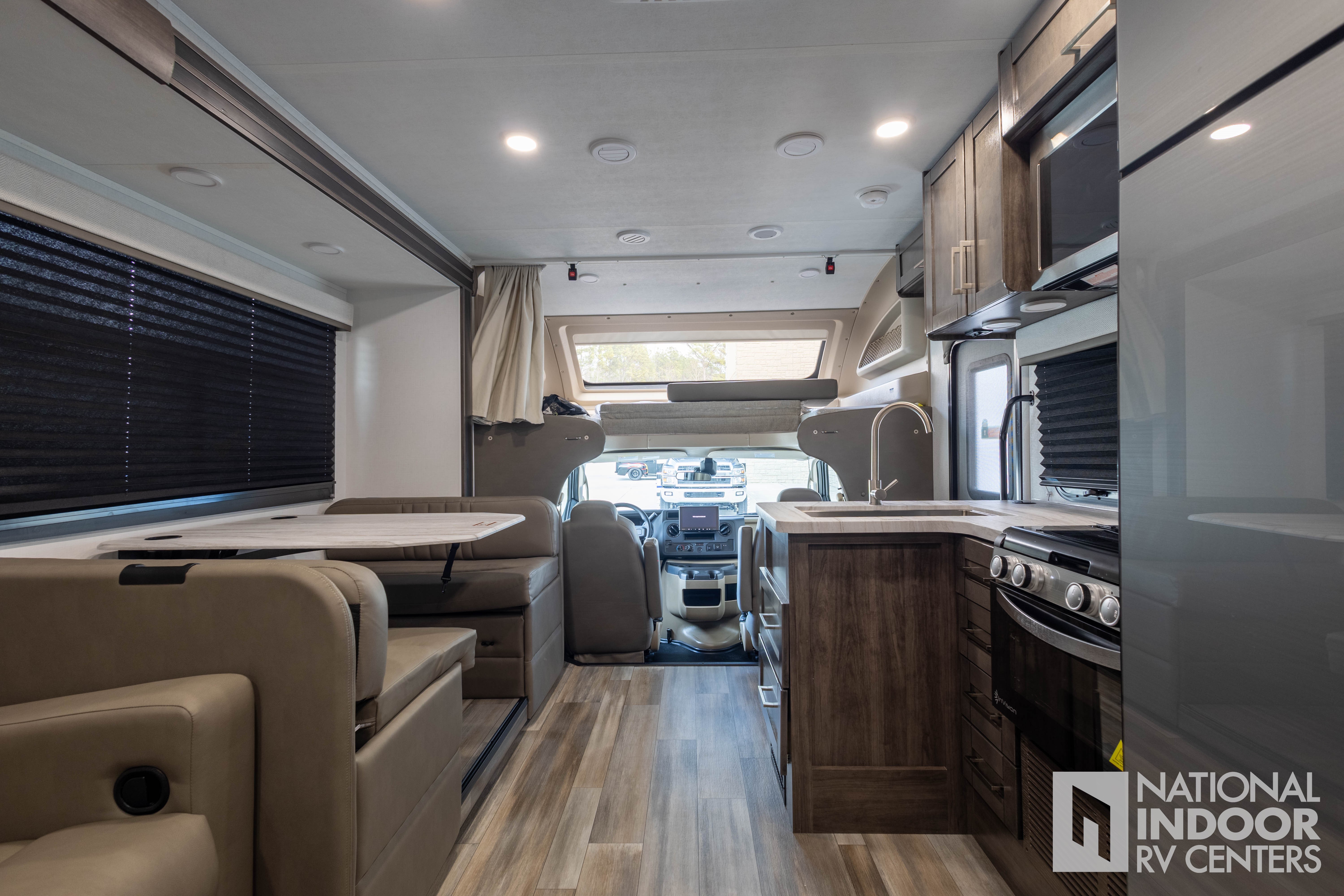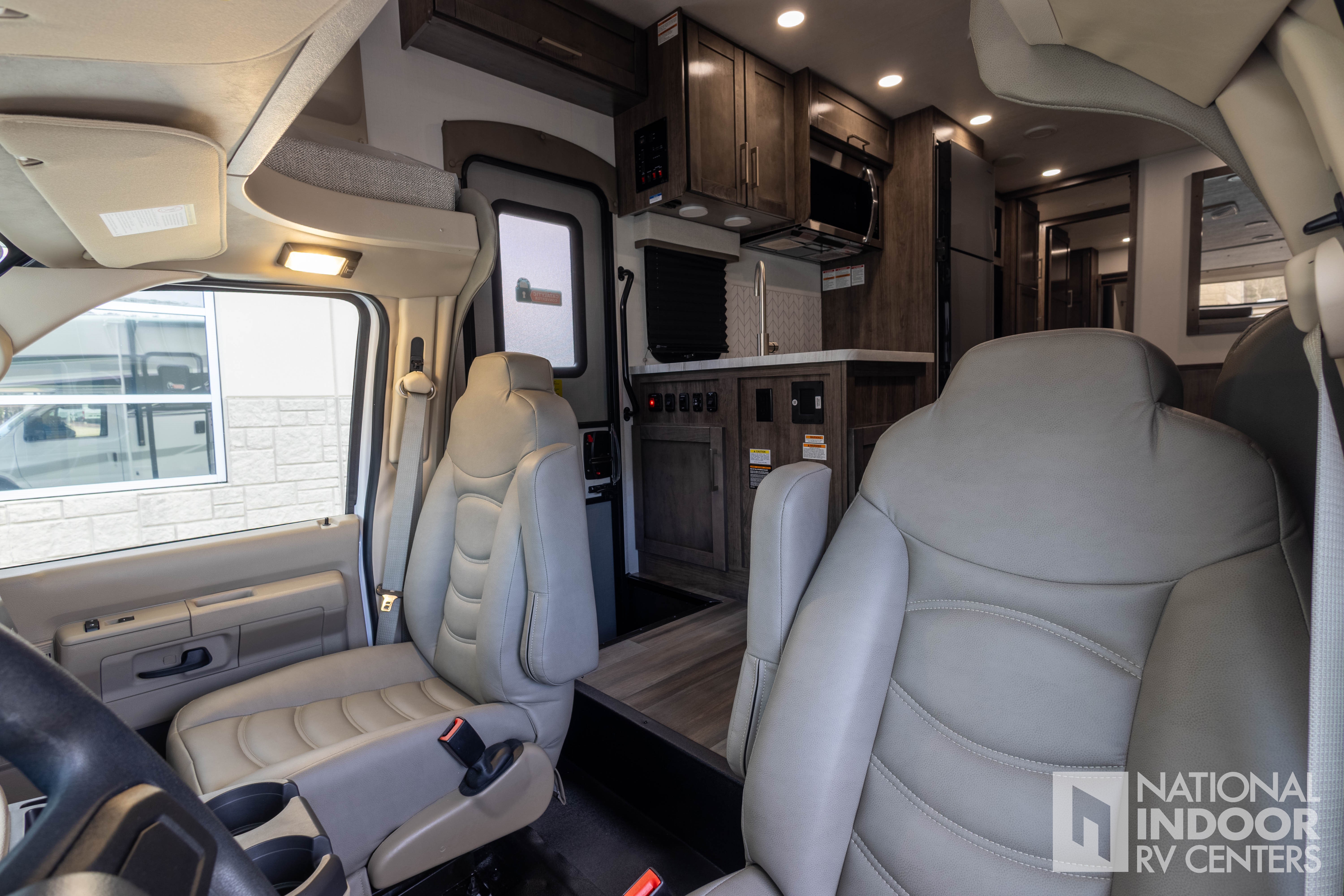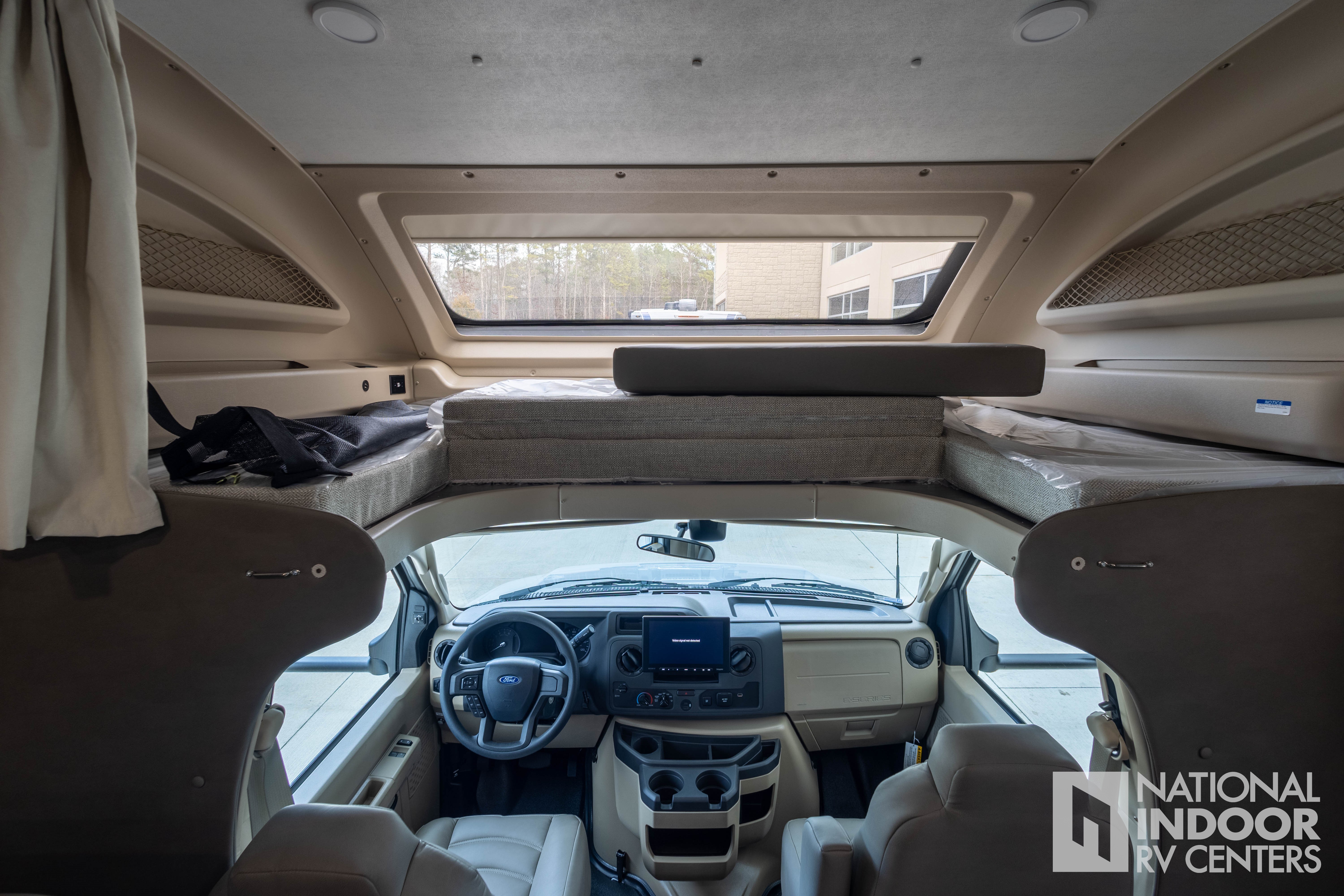 • One-piece, seamless fiberglass front cap; Automotive-bonded panoramic window in front cap with power shade