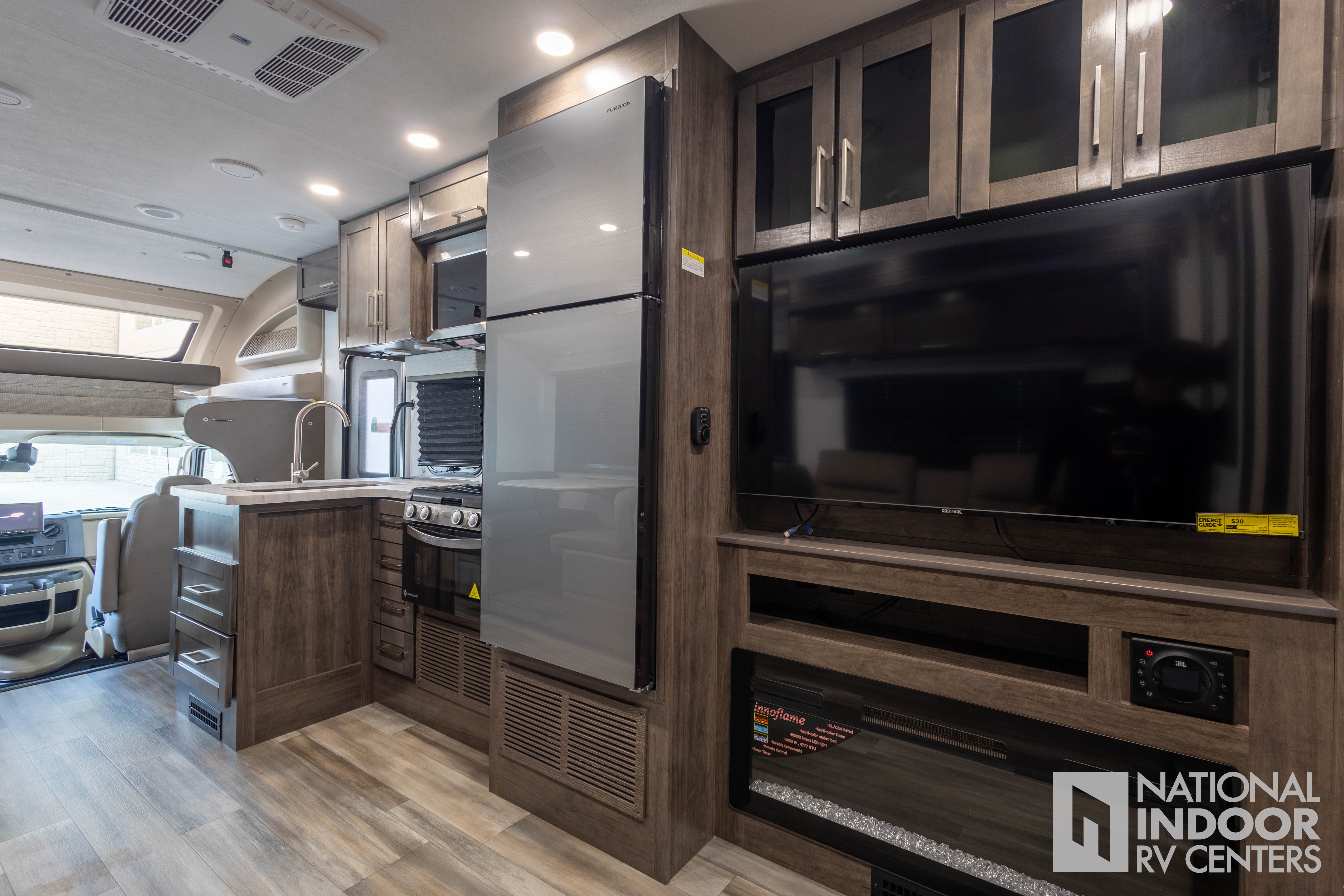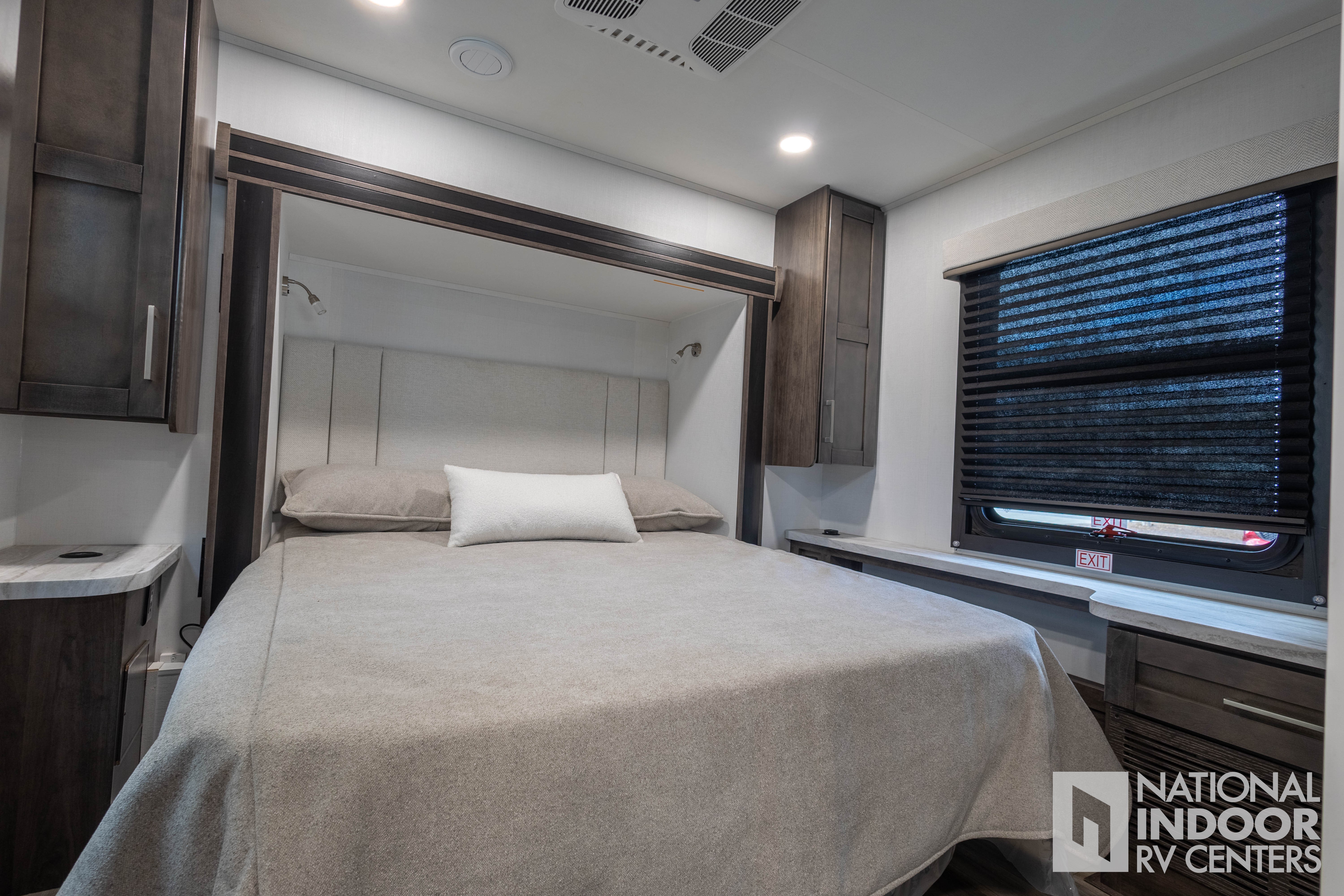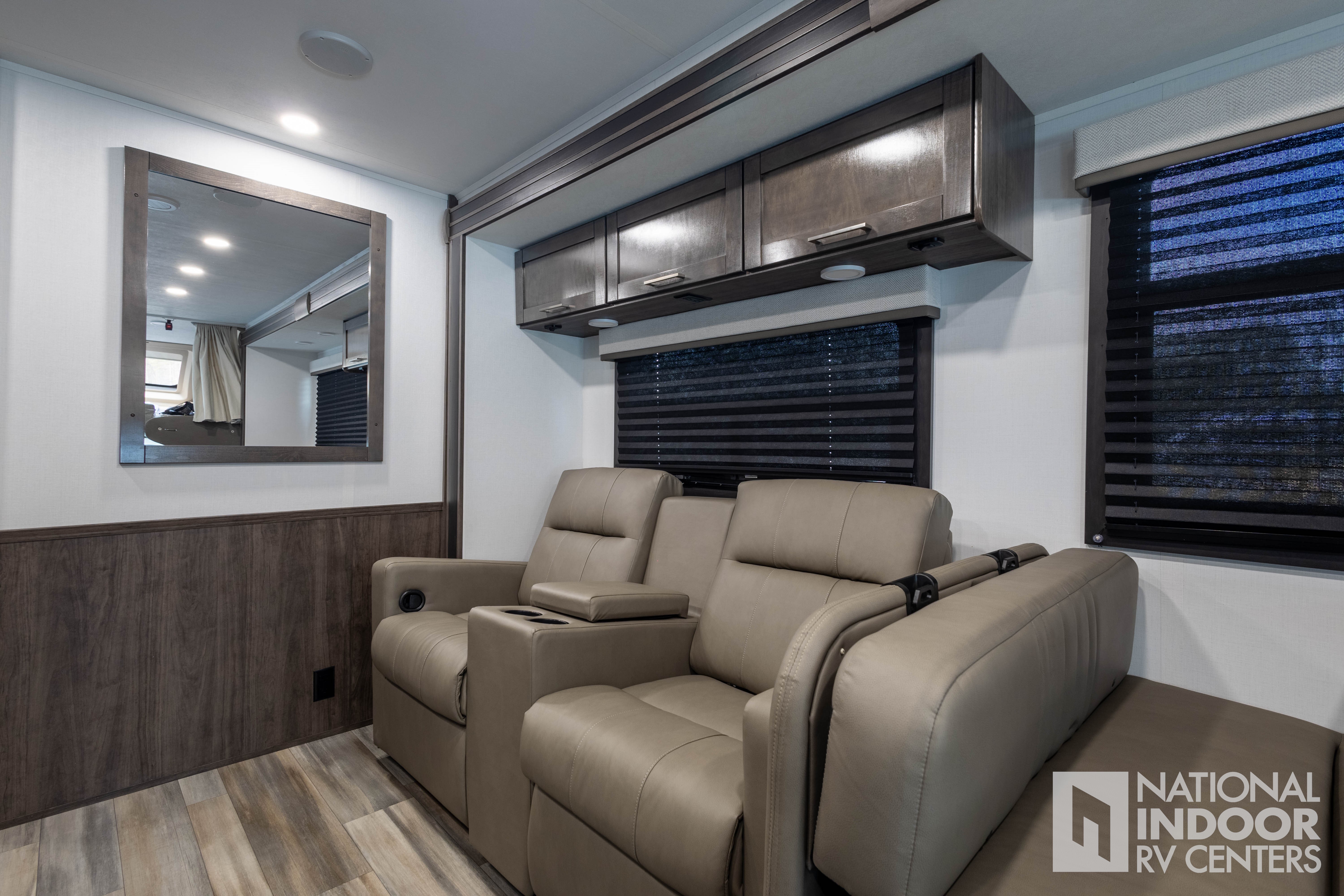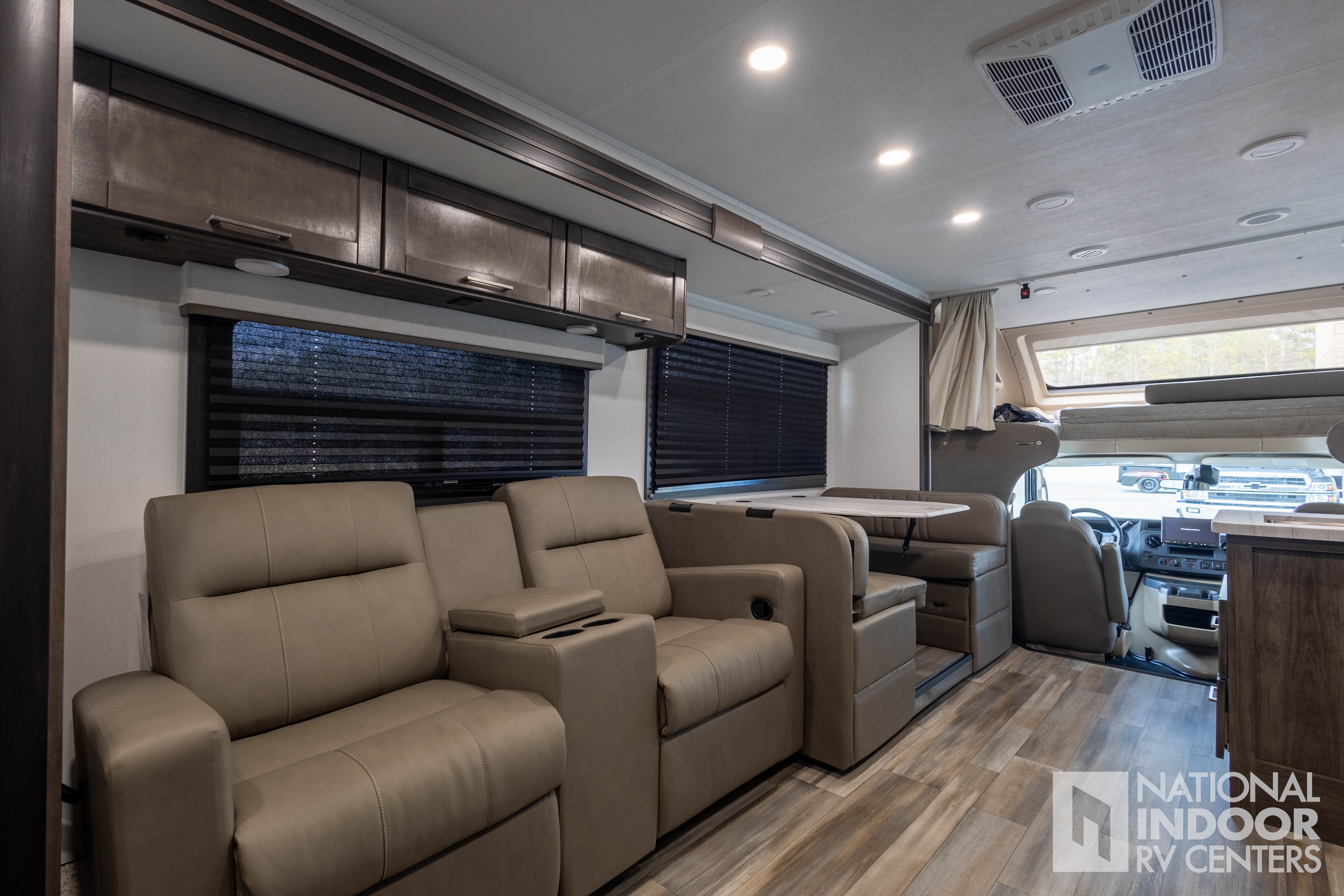 • One-piece, seamless fiberglass front cap; Automotive-bonded panoramic window in front cap with power shade