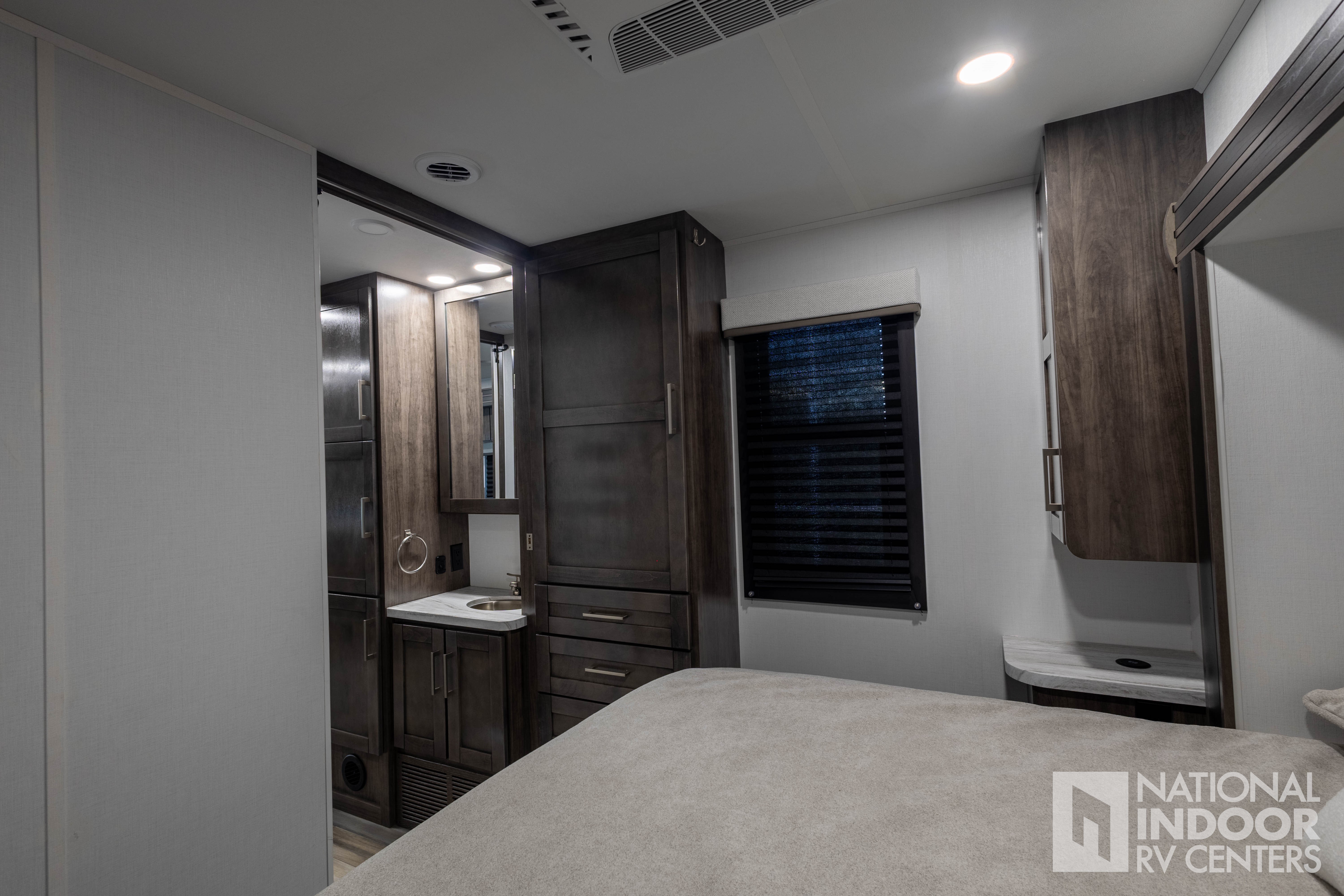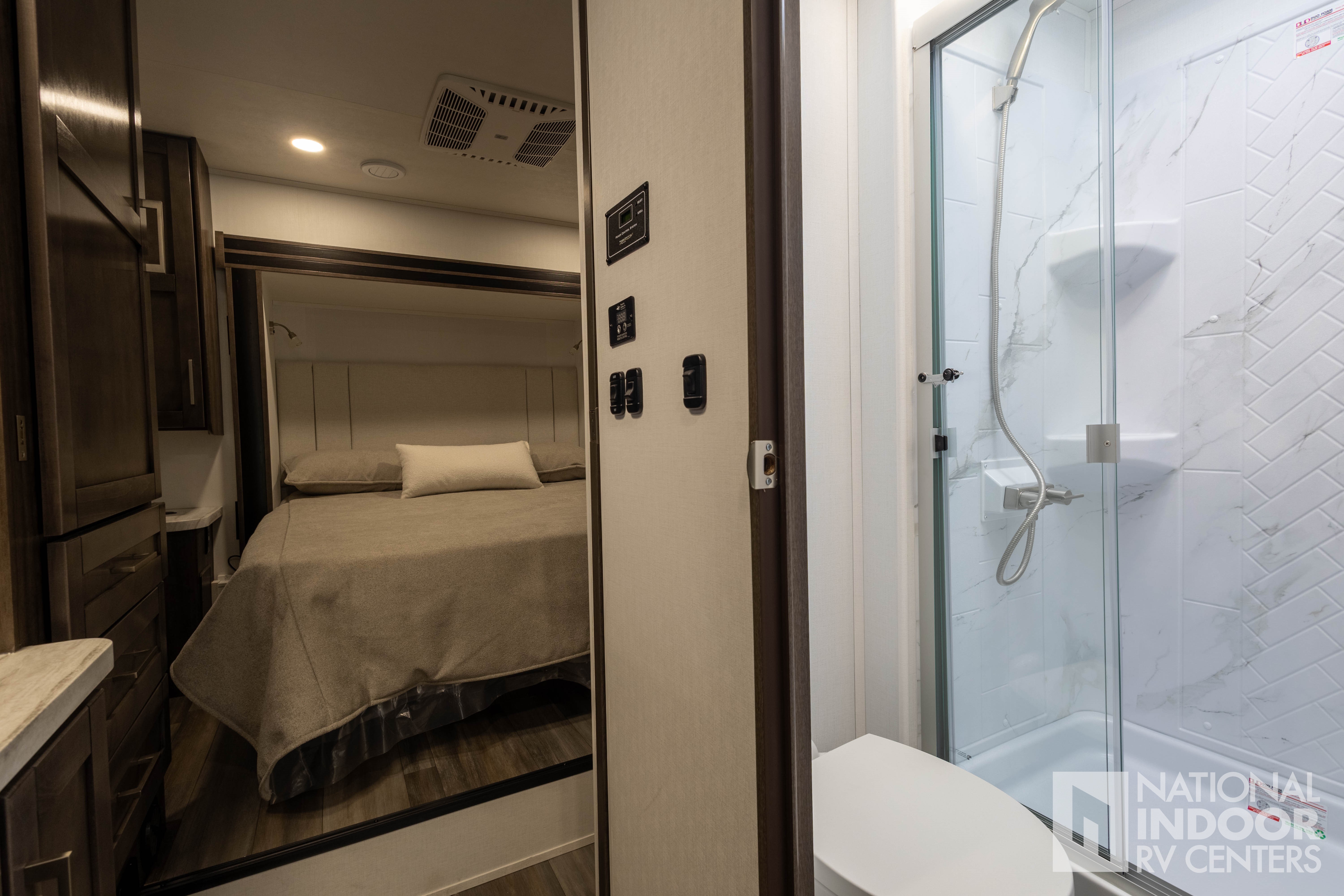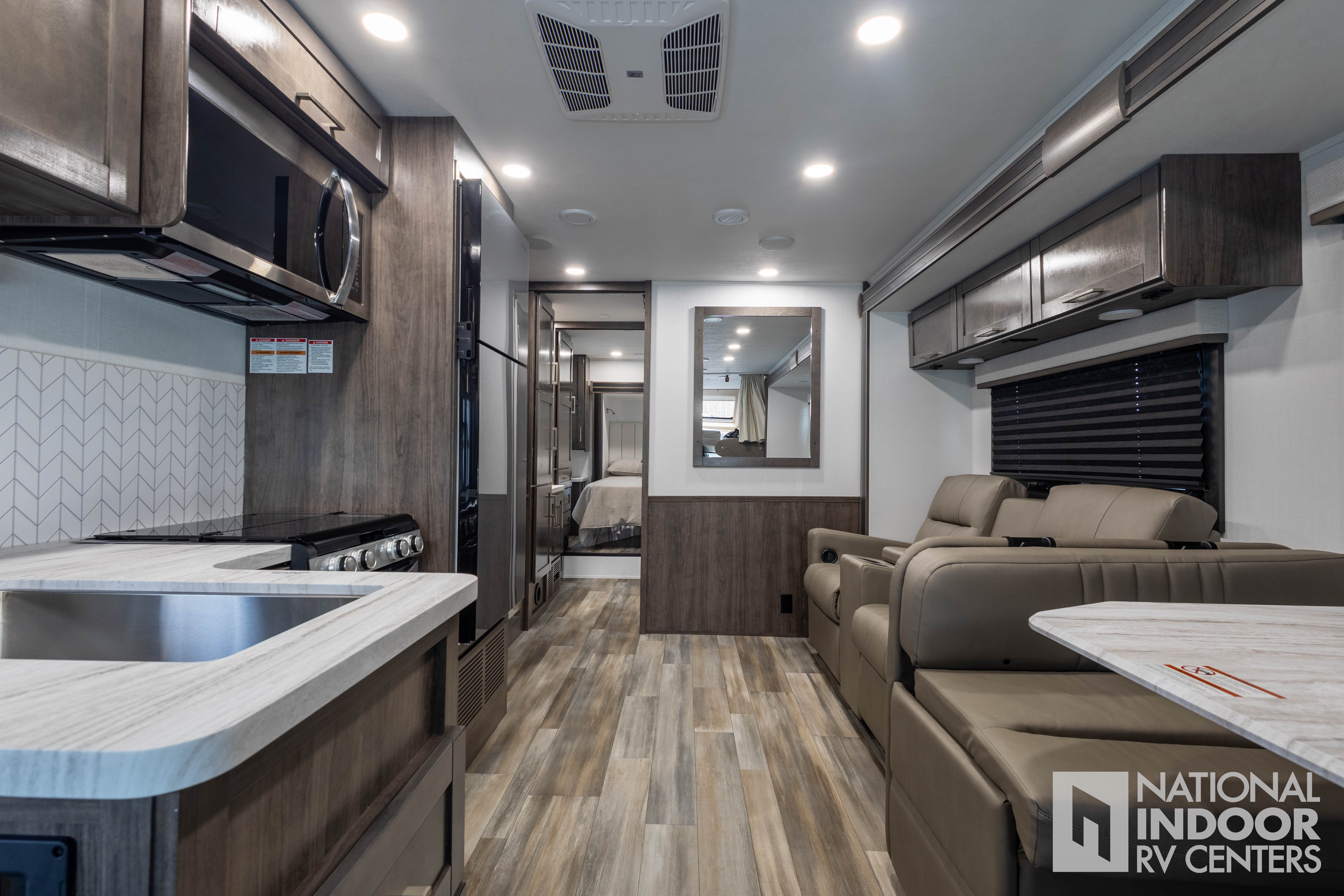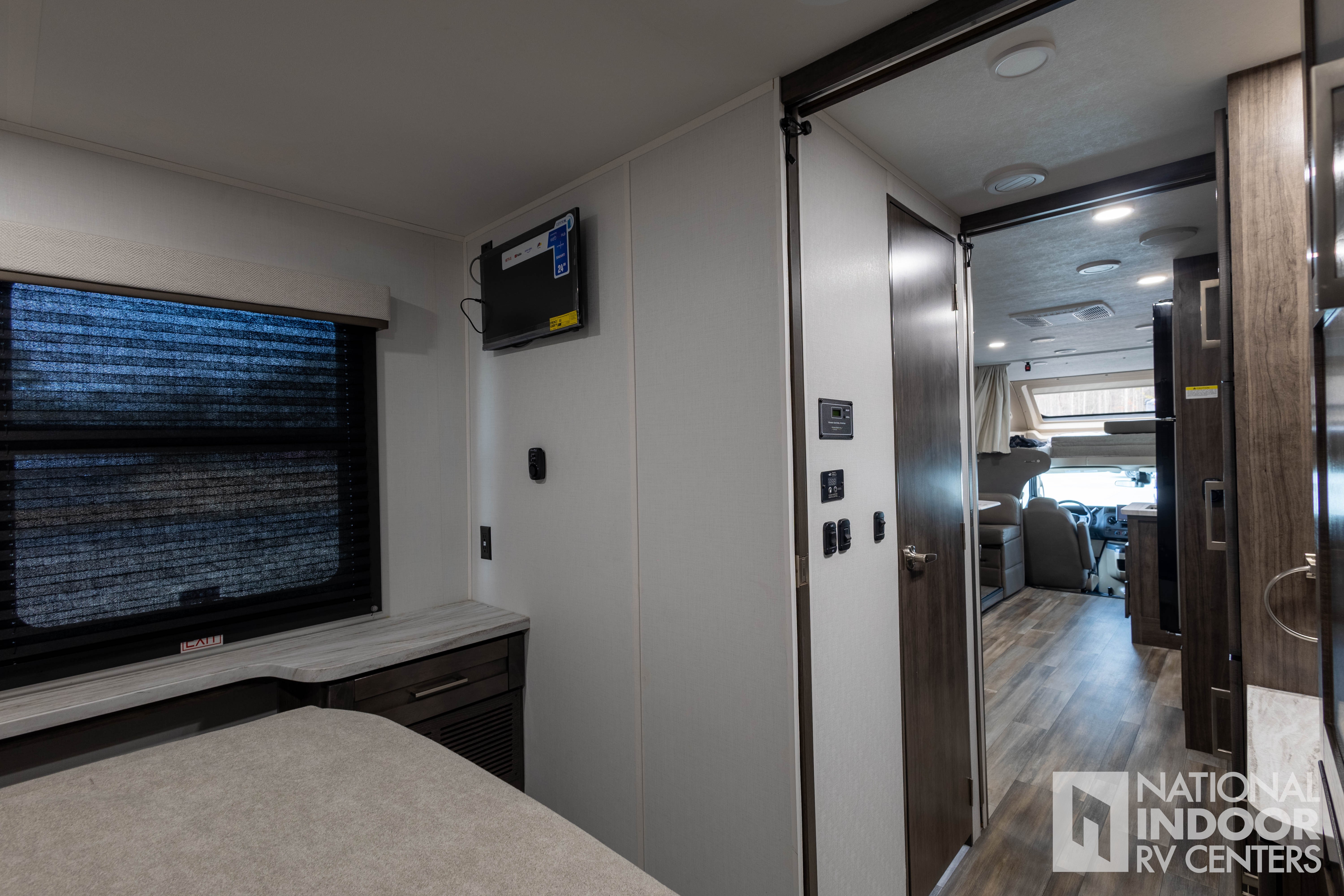 • One-piece, seamless fiberglass front cap; Automotive-bonded panoramic window in front cap with power shade