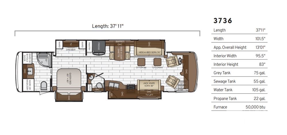 Freightliner Chassis, 450HP, Comfort Drive Steering, OnGuard Collision System, Updated Chassis Service, Heated Floor, Opposing Sofas, Washer & Dryer, Updated Tires, RettroBand Installed, Fully Loaded!