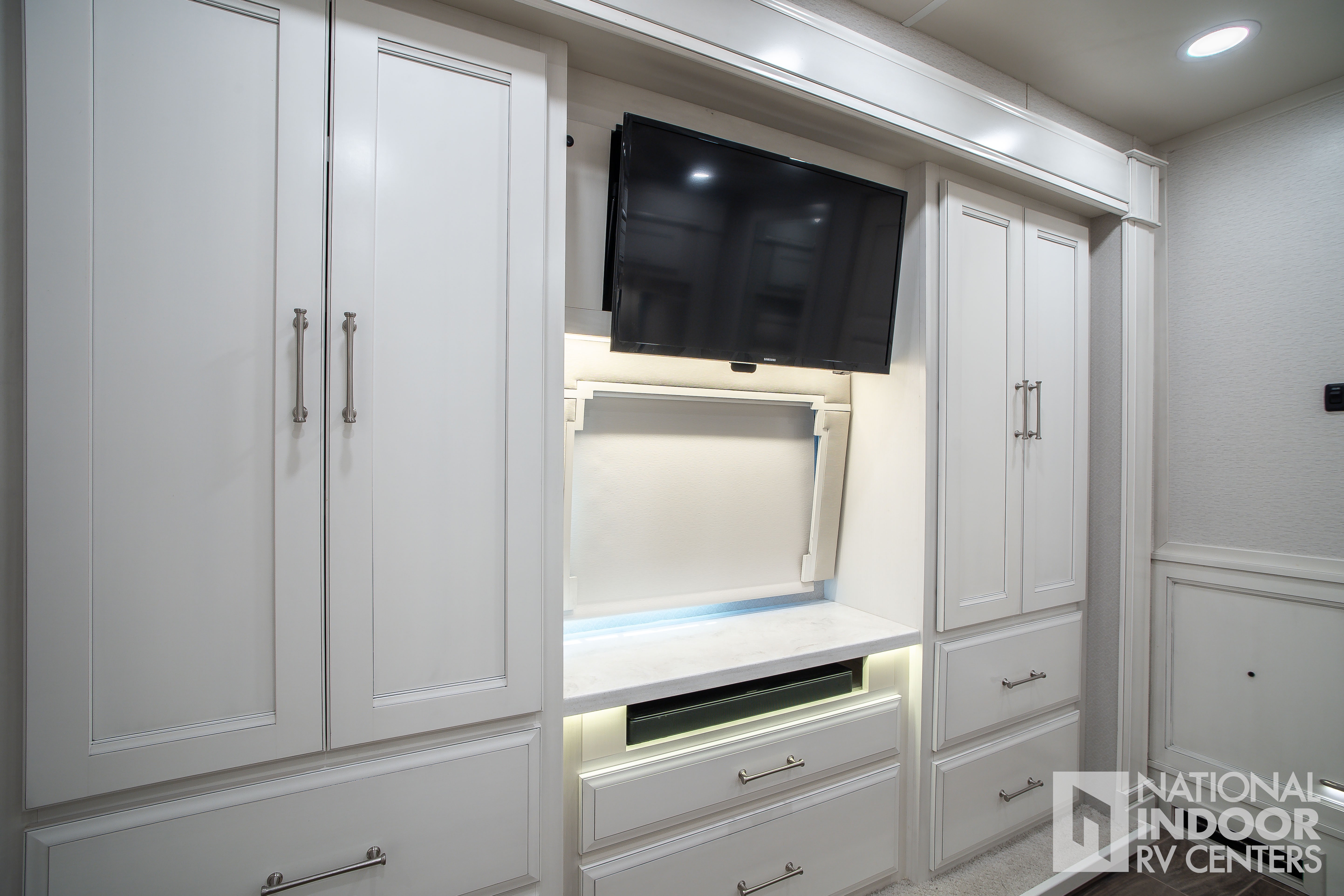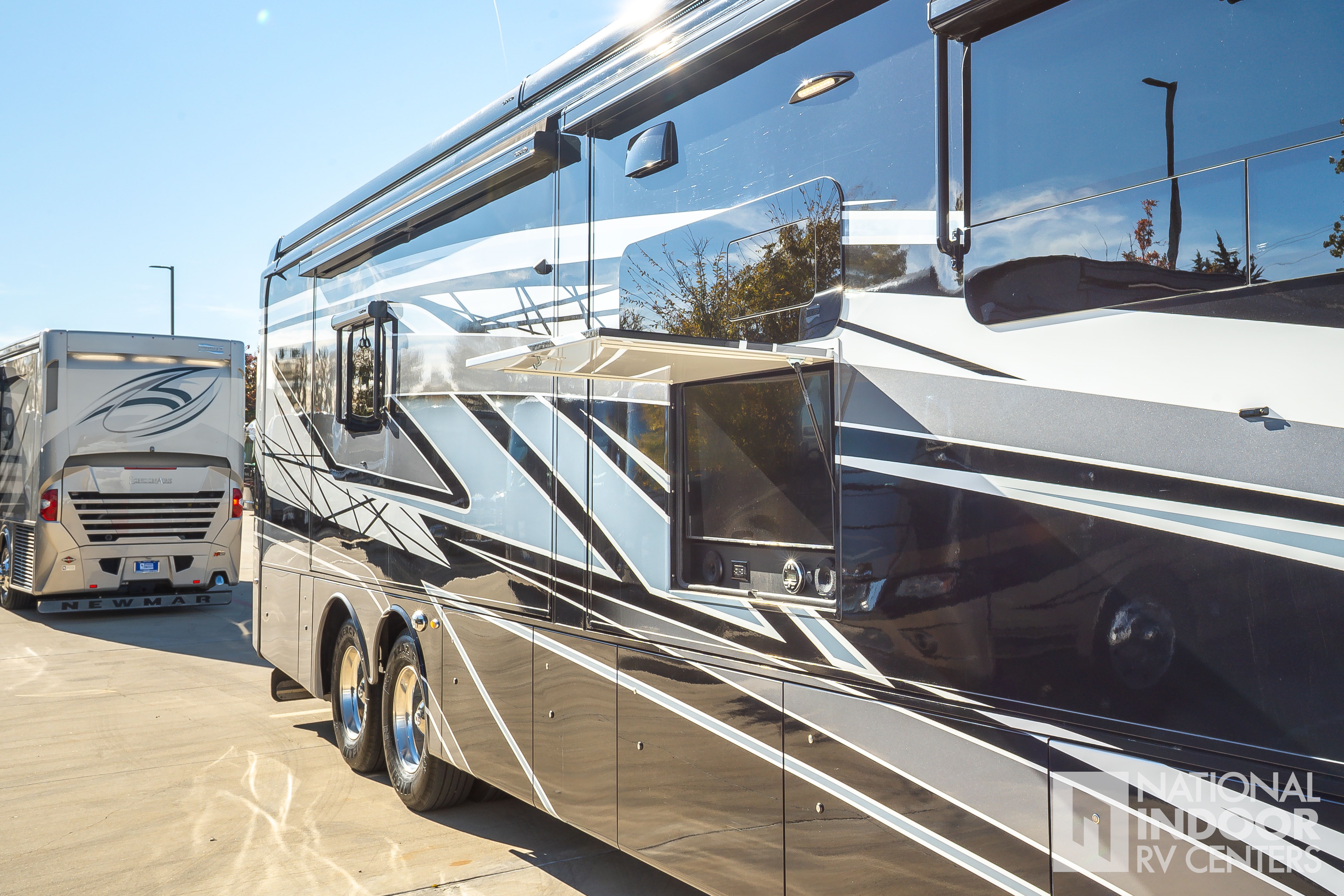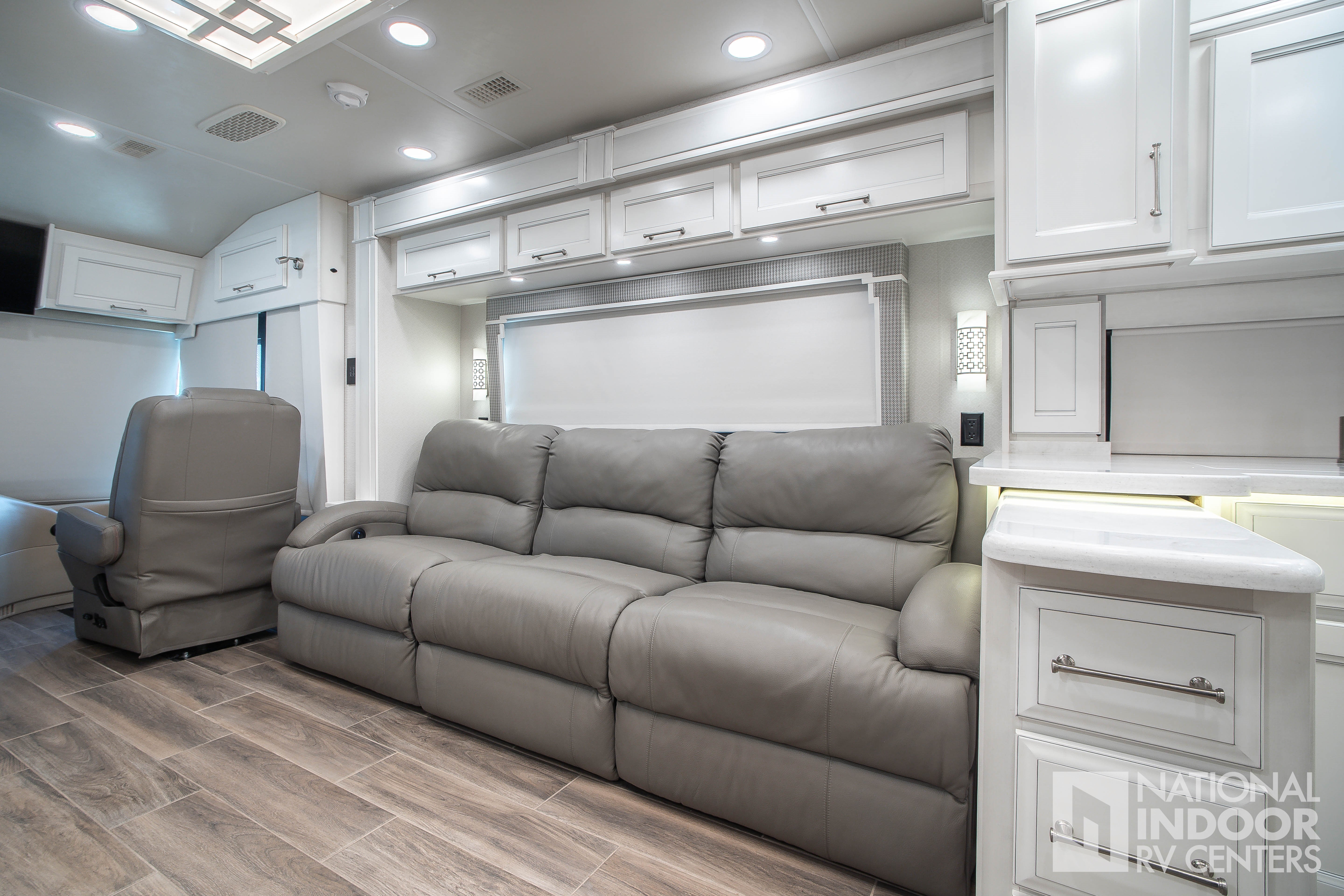 Entegra-exclusive Relia-Torque flush-mounted 12V slideout system with VegaTouch and rocker switch controls