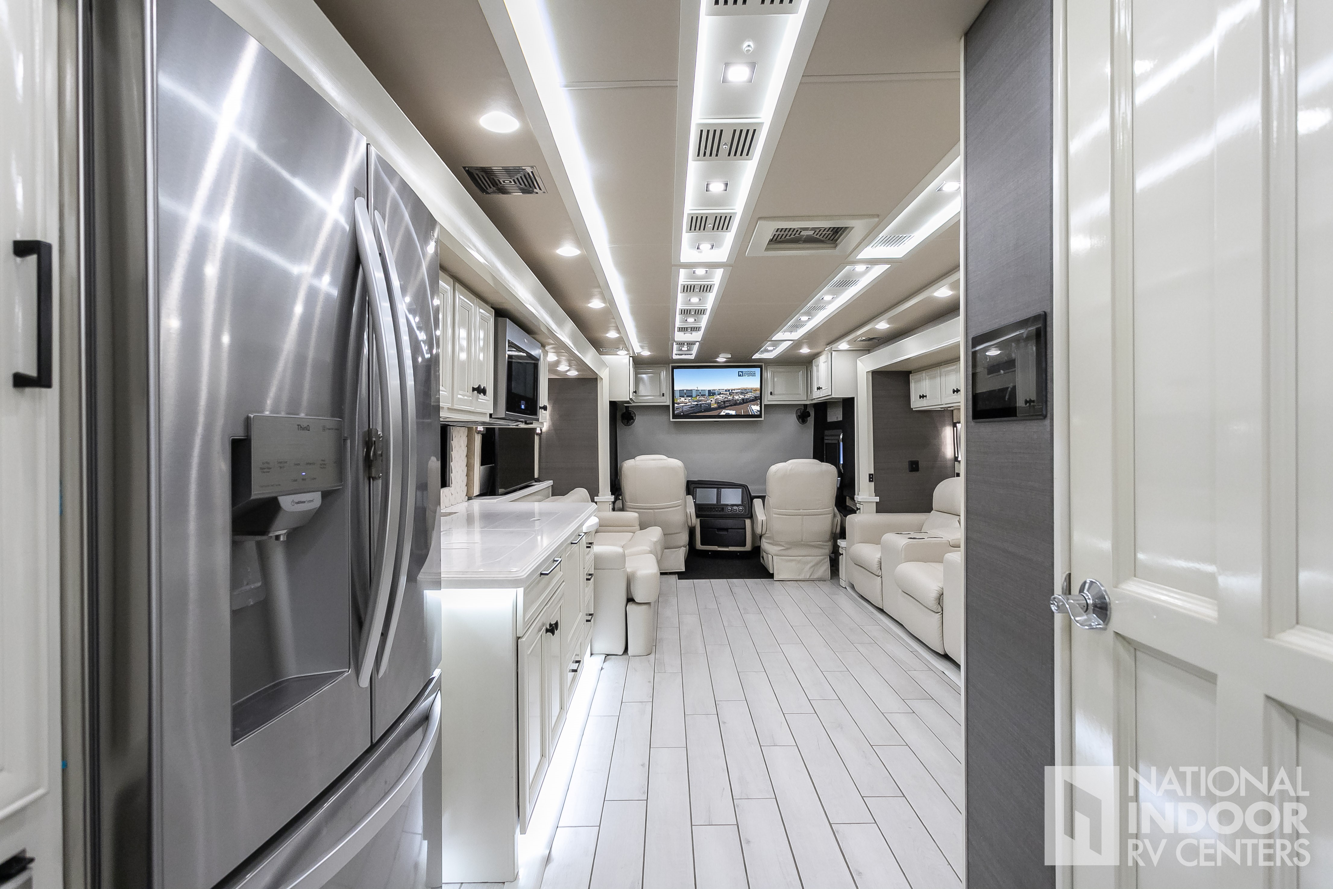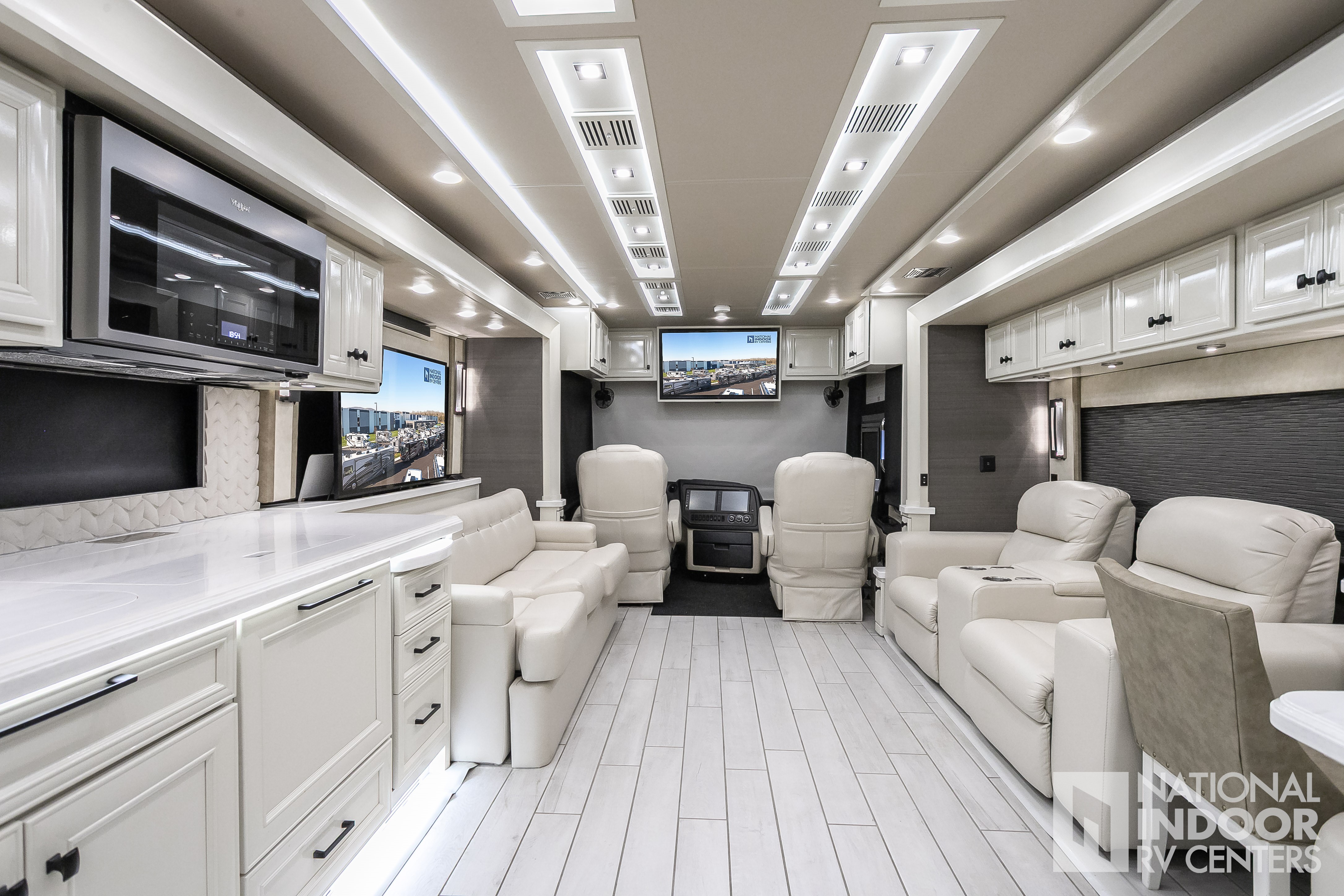 Cummins Powerglide 605 HP Tru Track, Mobileye Collision Avoid System, Bath and a Half, Beautiful Master Suite, King Bed, Double Vanity, Washer & Dryer, Heated Tile Floors, Theater Seating, Table and Chair Dinette, Dometic Freezer in Bay, Residential Refrigerator, Wine Cooler/Beverage Center, Starlink In-Motion, Full Lithium Upgrade, and So Much More!