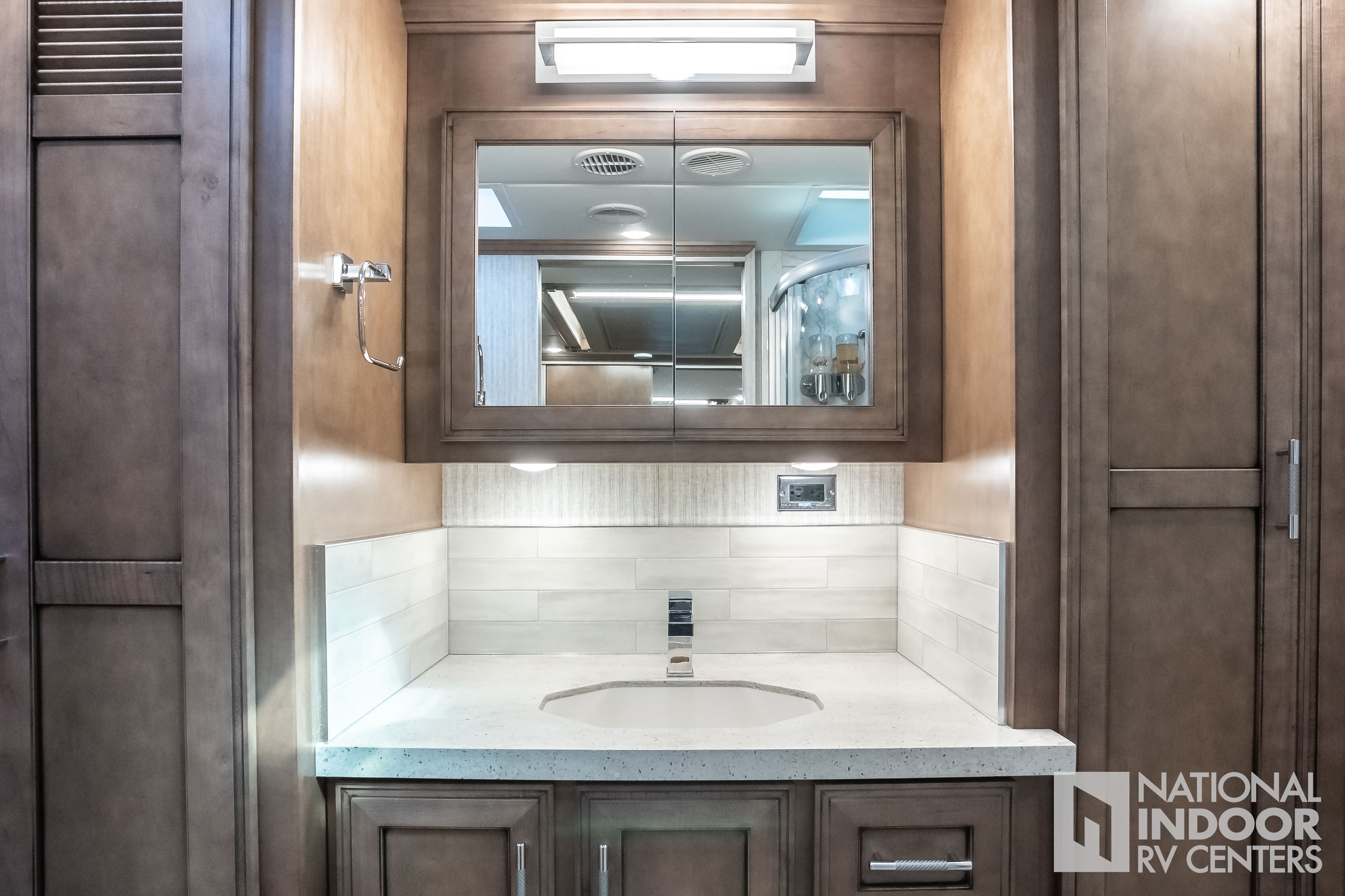 | TV Jack and 110 Volt Recept in Door Side Exterior Storage Compartment |