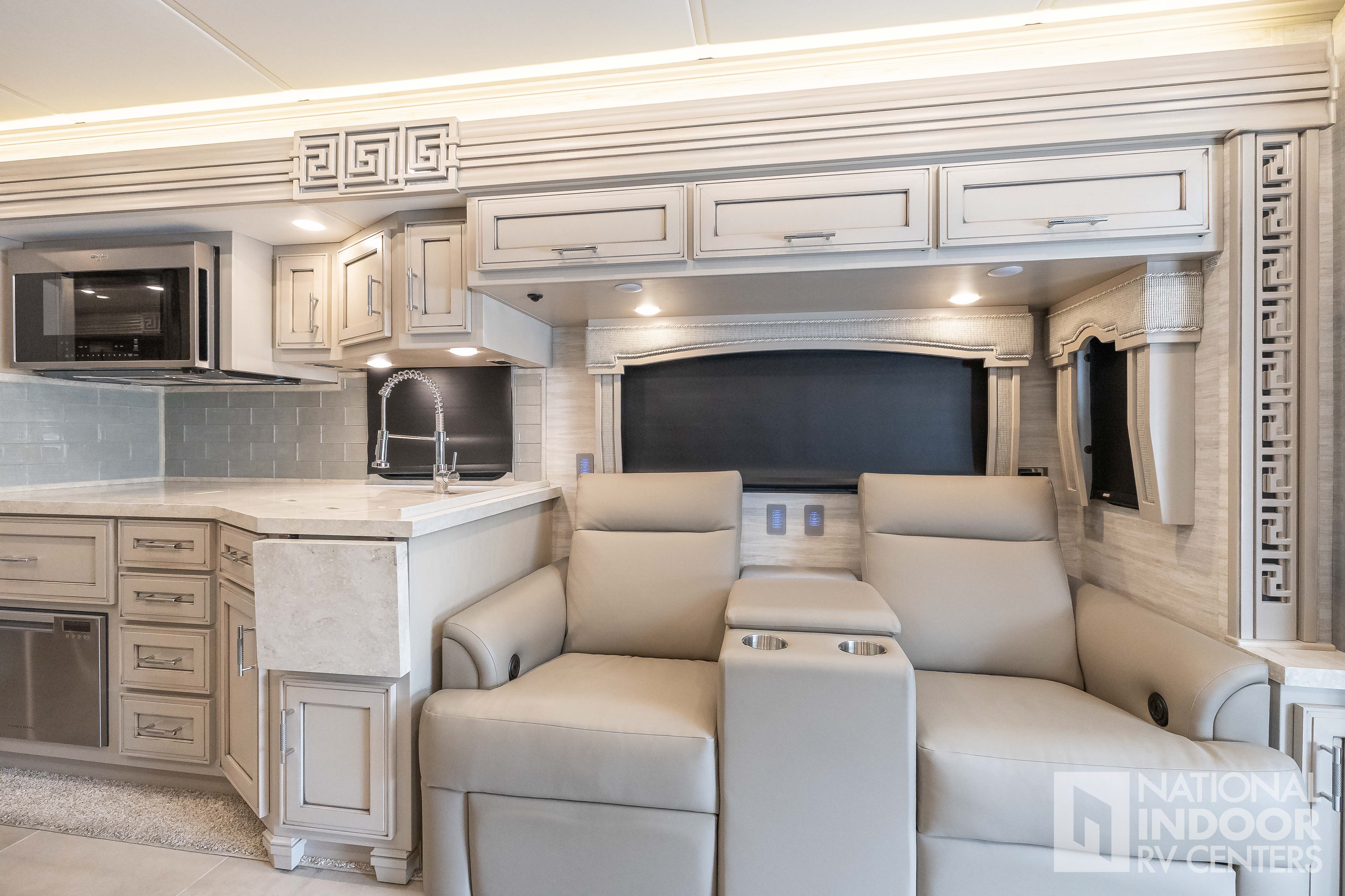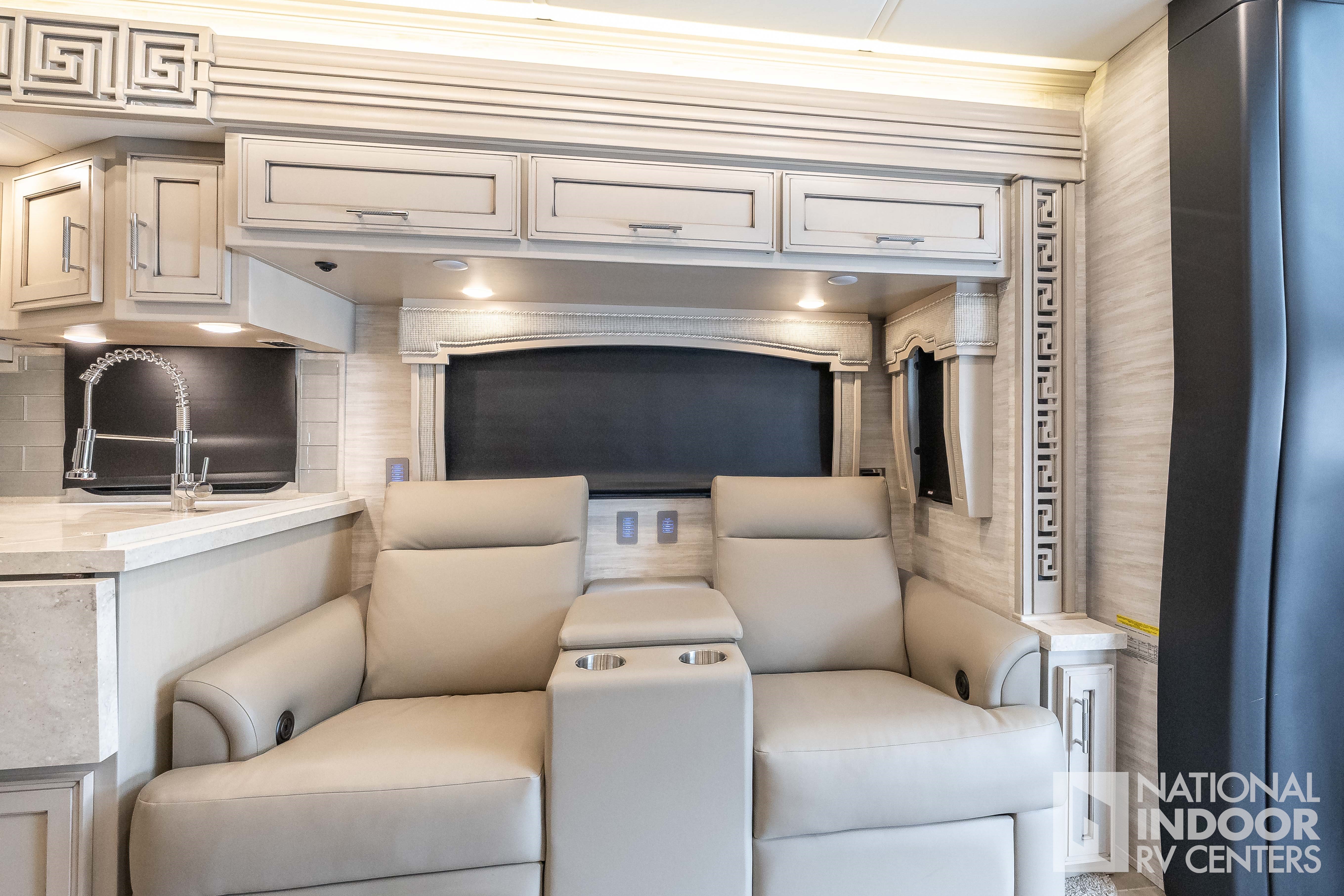 | Powered Theater Seating 74” with Reading Lights, Off Door Side, Sleeper Booth Dinette 38” |