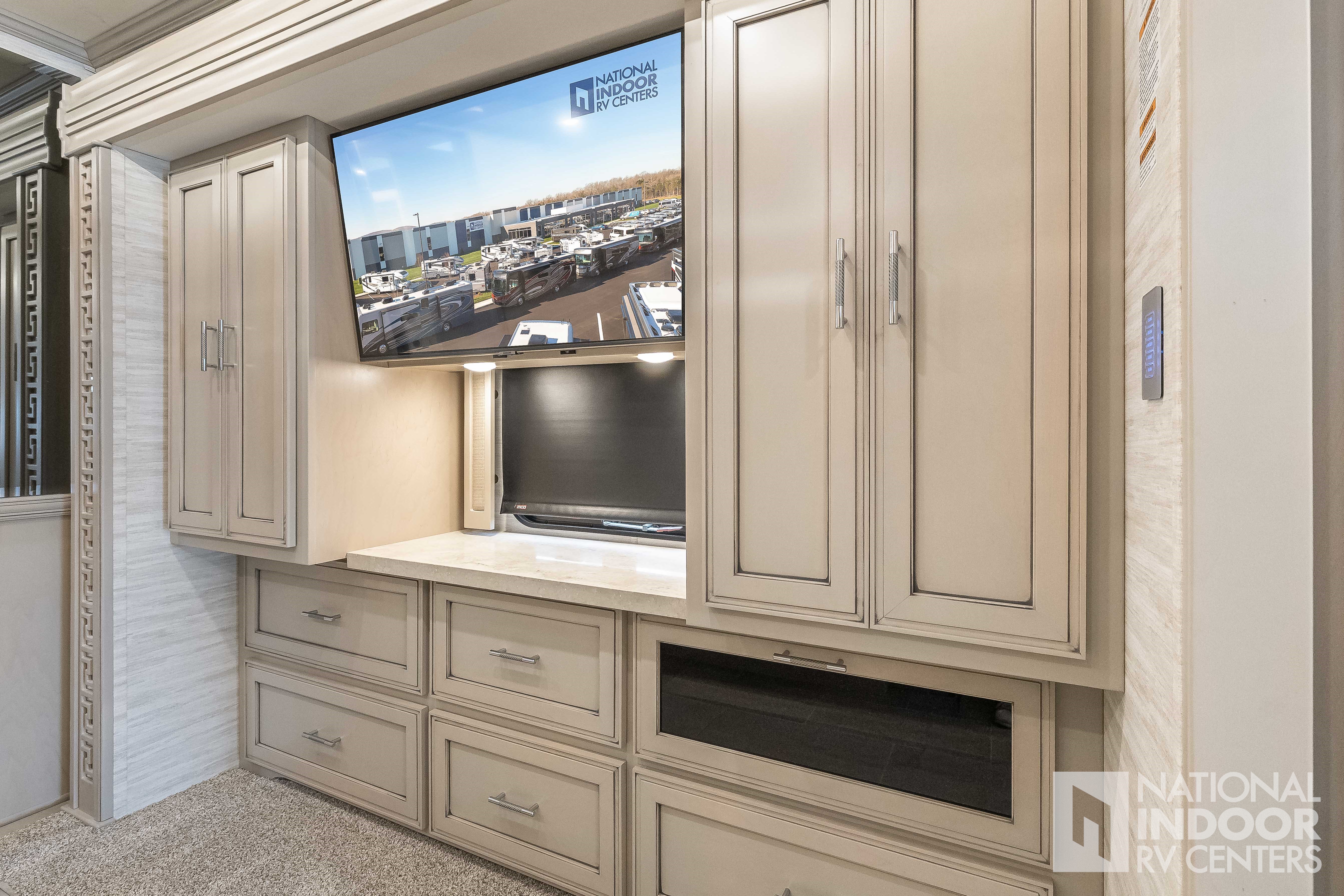 | TV Jack and 110 Volt Recept in Door Side Exterior Storage Compartment |