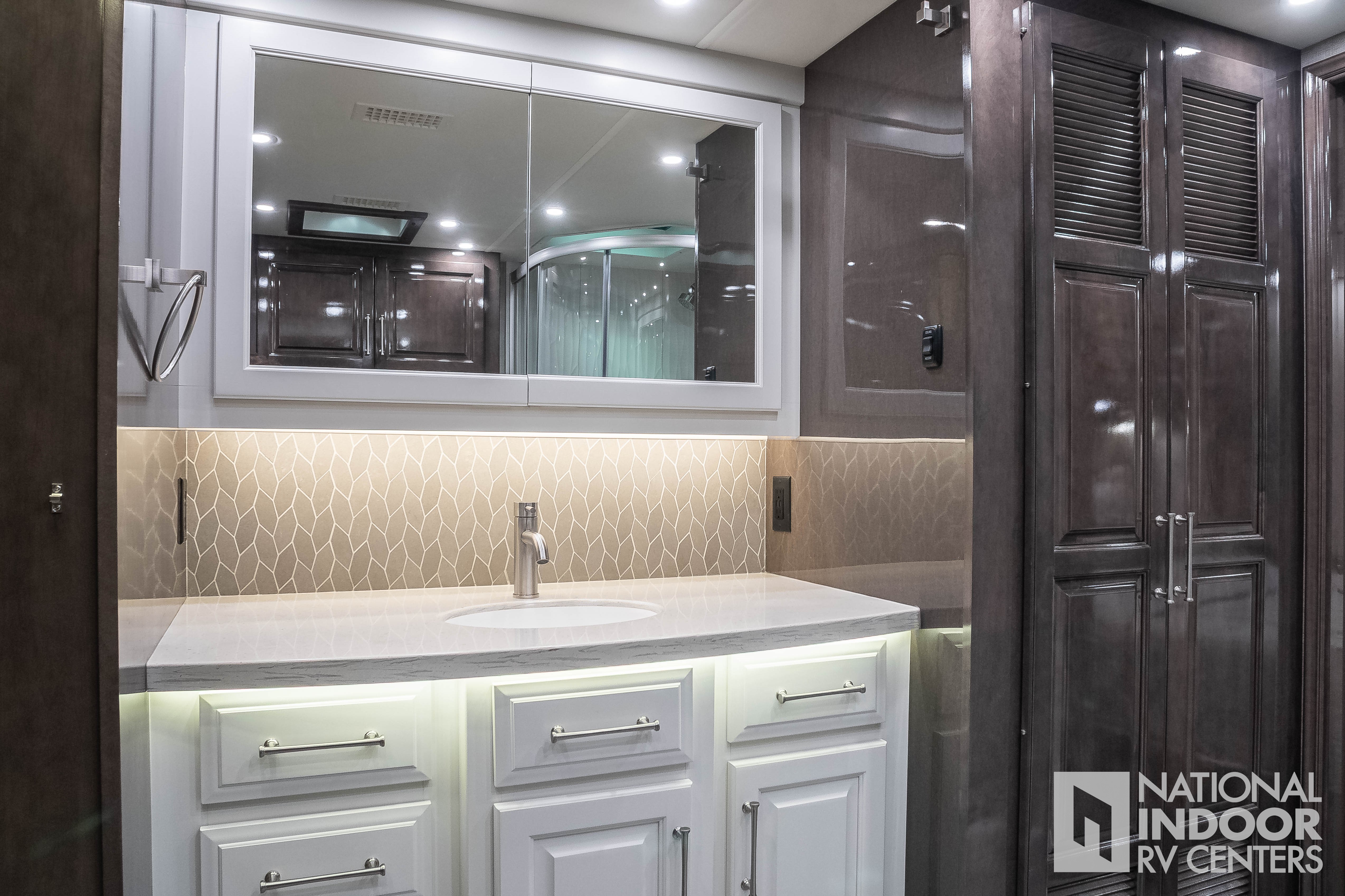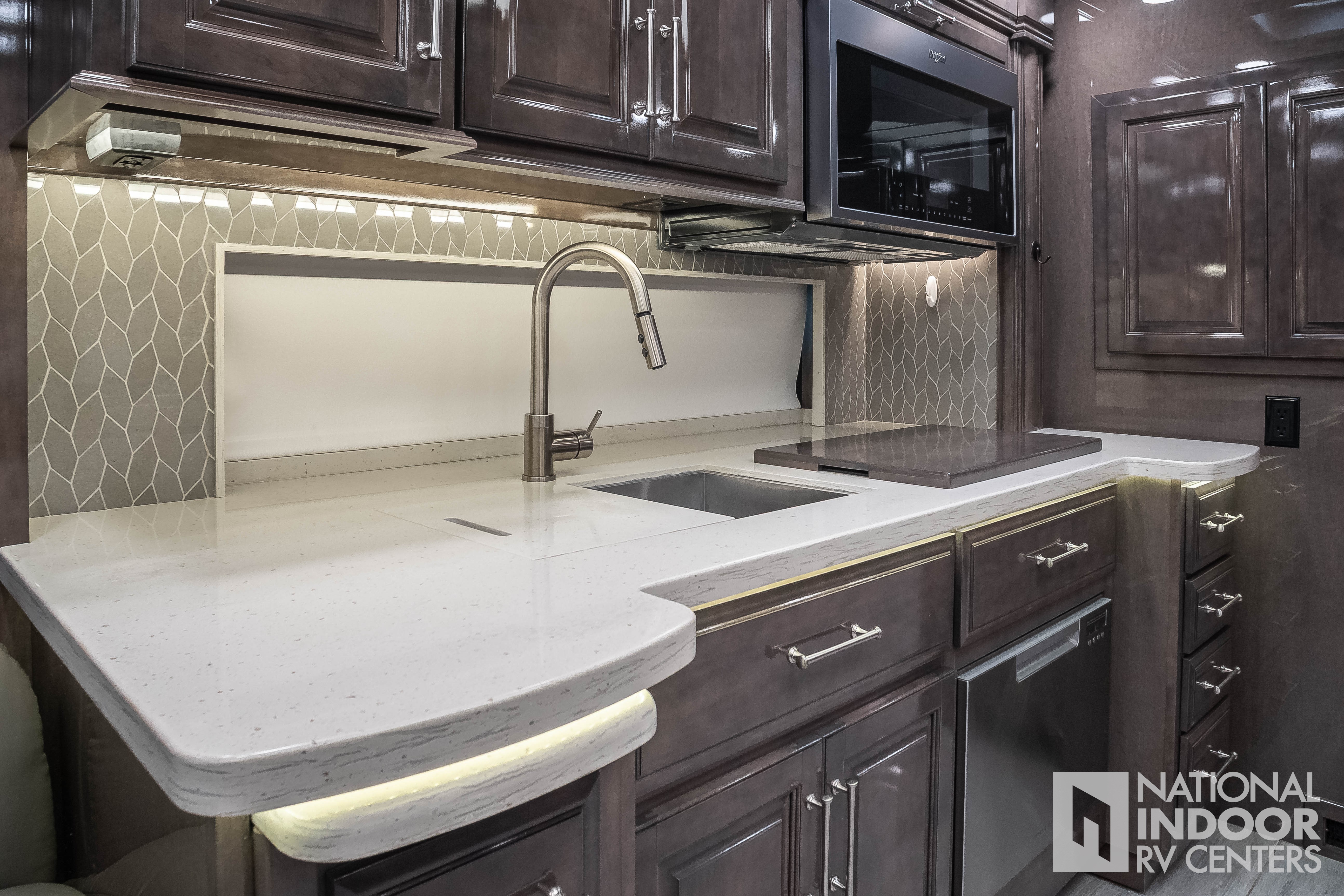 | Solid surface countertops with dimmable LED accent lighting |