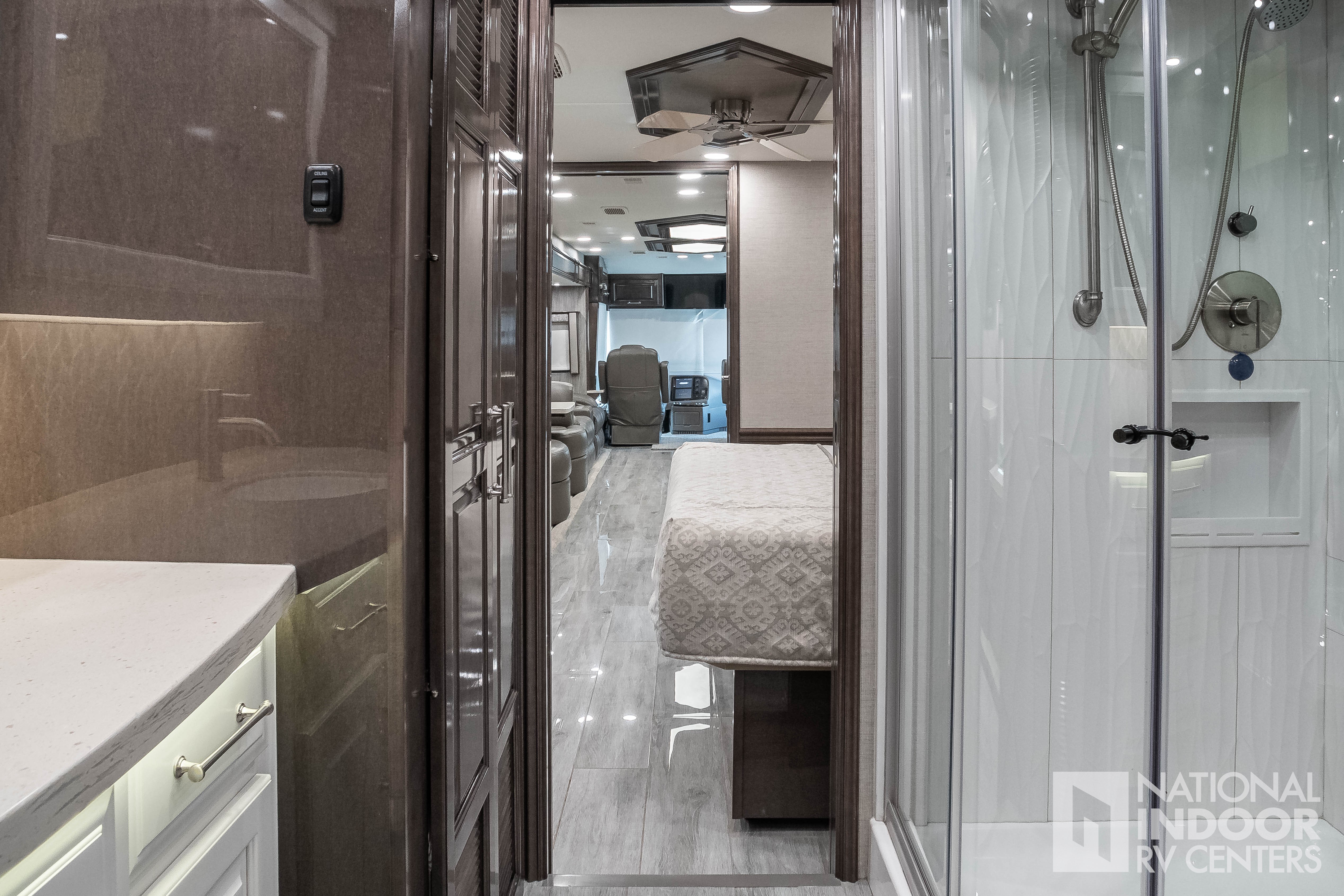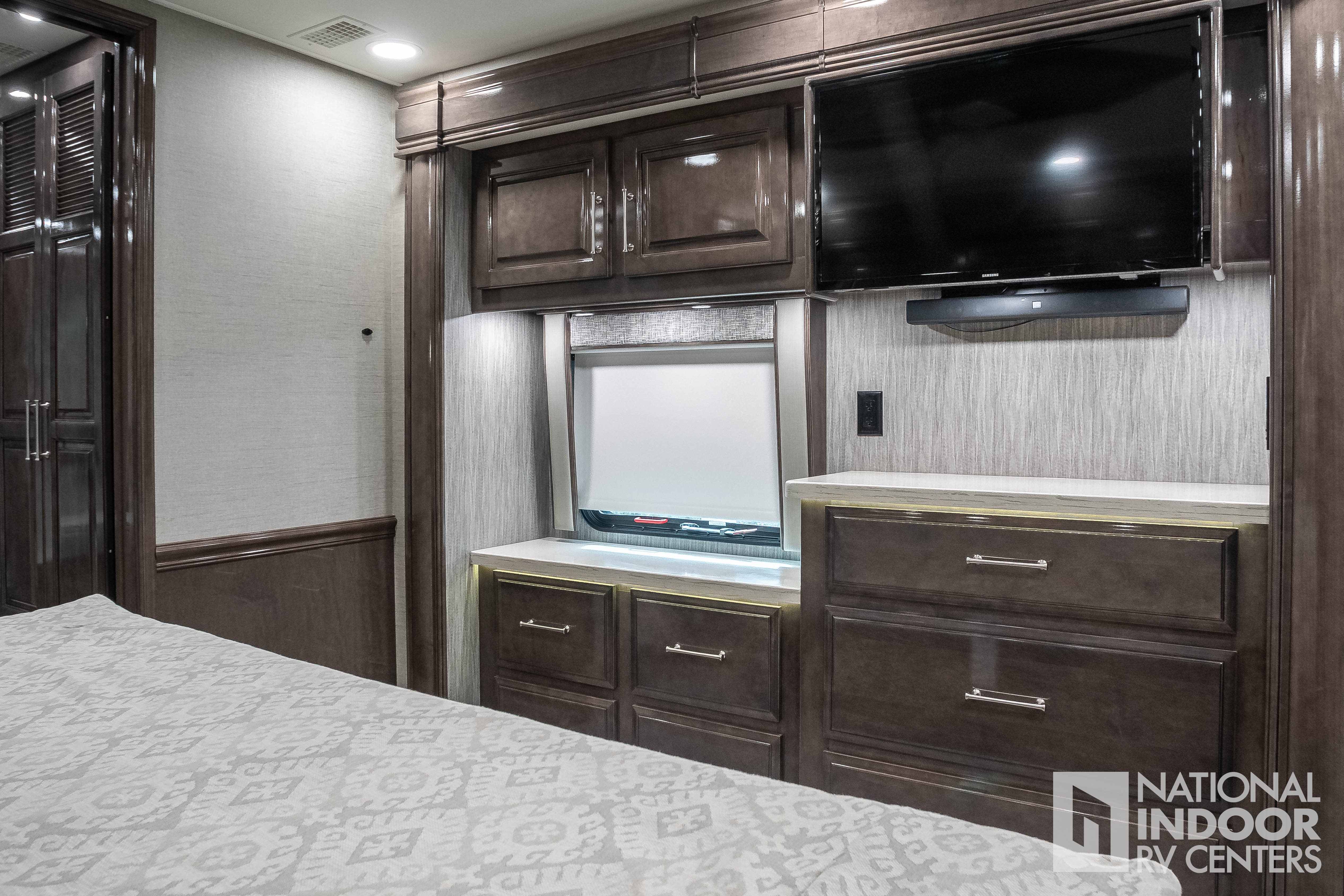 | Entegra-exclusive Relia-Torque flush-mounted 12V slideout system with VegaTouch and rocker switch controls |