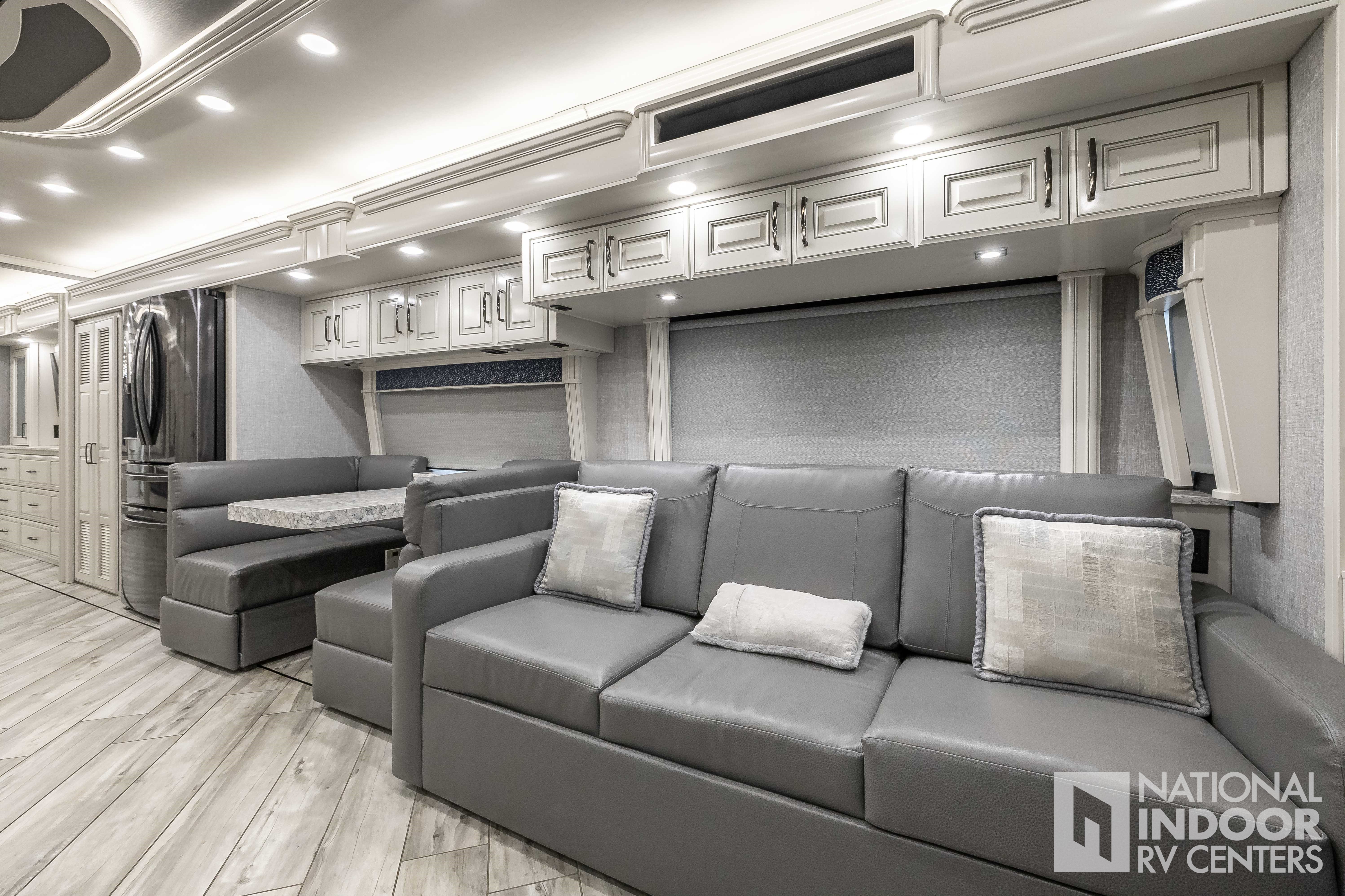 Freightliner Chassis - 605HP ISX, King Bed in Master Suite, Bath and a Half, Double Vanity in Master Bath, Washer & Dryer, Heated Porcelain Tile Floor, Motion Power Lounge, Residential Appliances, Booth Dinette, 2 x 460Ah Lithium Batteries, Blu Filter & Blu Softener, Magna Shades & Tire Covers!