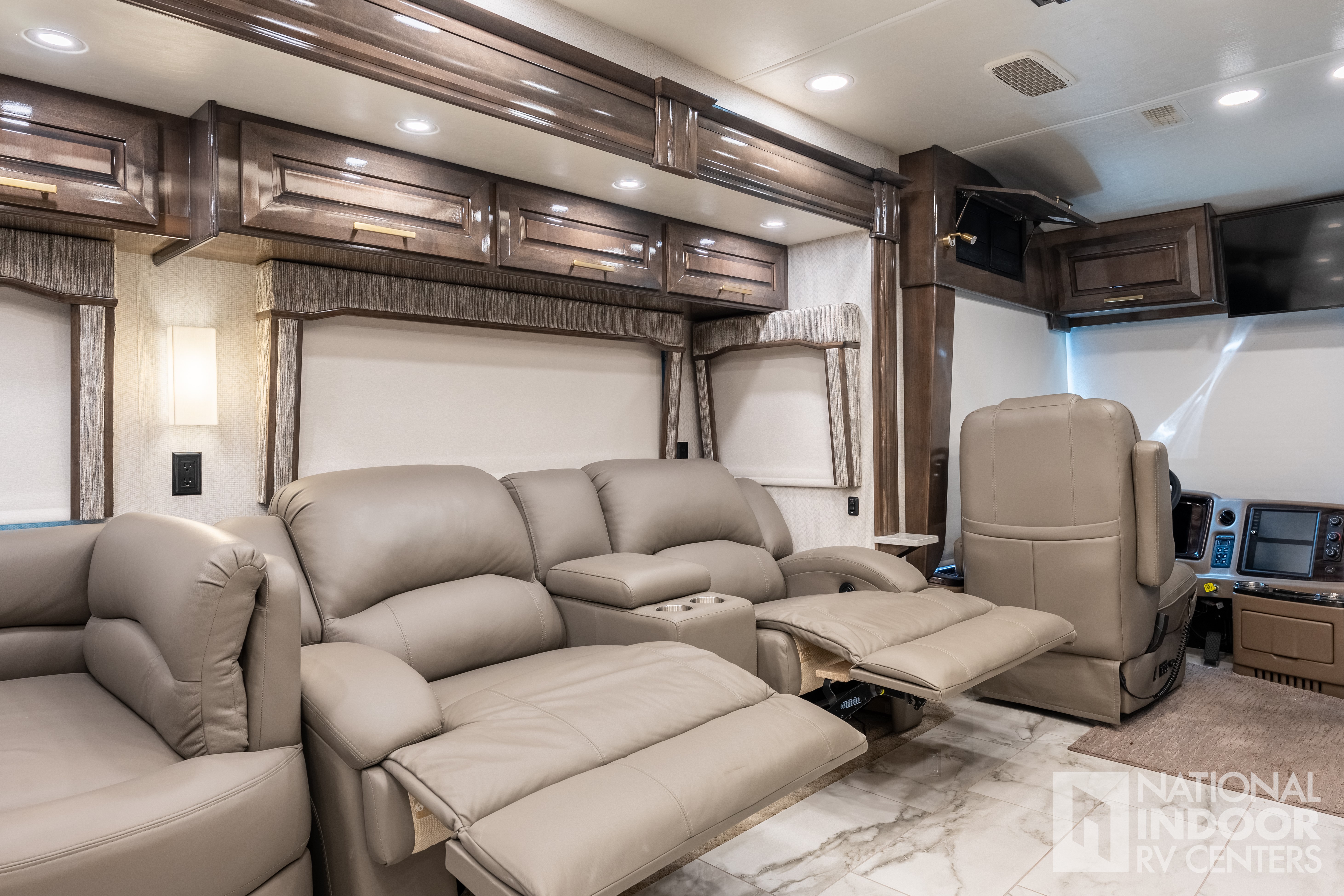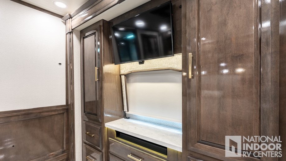 Entegra-exclusive Relia-Torque flush-mounted 12V slideout system with VegaTouch and rocker switch controls