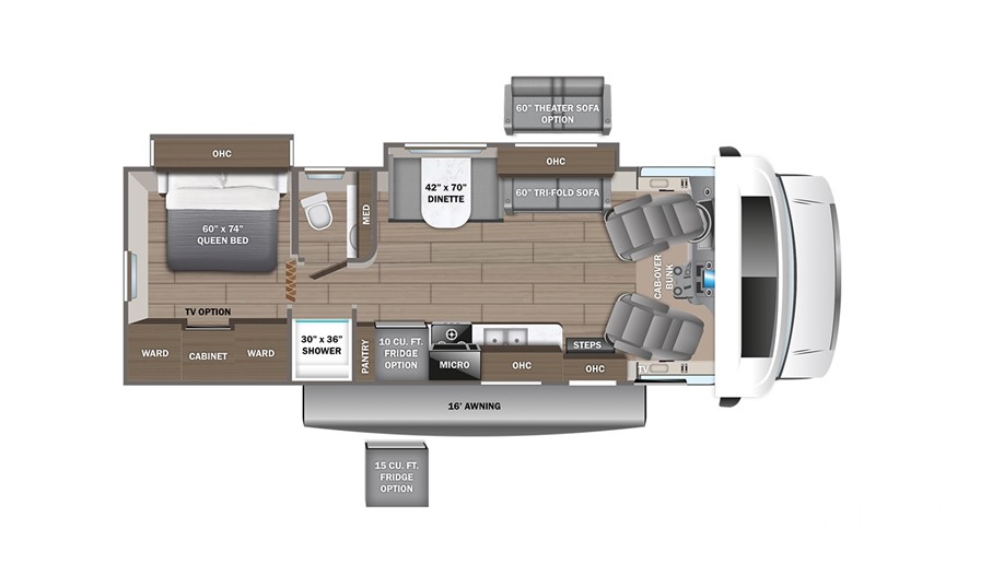 | Overhead bunk with 750 lb. capacity and safety net; Custom-molded ABS surround in cab-over area |