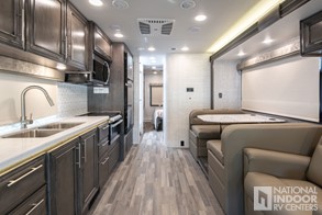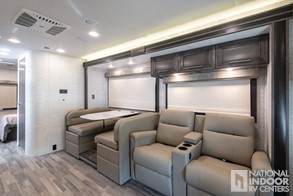 | E-Z Drive™ Elite; Automatic hydraulic leveling jacks; Frameless windows; Electric patio awning with LED lights; Exterior LED HD Smart TV with (2) high-output, marine-grade exterior speakers; 1,000W inverter; Chrome, heated, remote-controlled, side-view mirrors; Sony® infotainment center with Apple CarPlay® and Android Auto™; Backup and side-view cameras; LED-lit, solid-surface kitchen countertops |