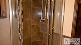 | Porcelain tiled shower with skylight |