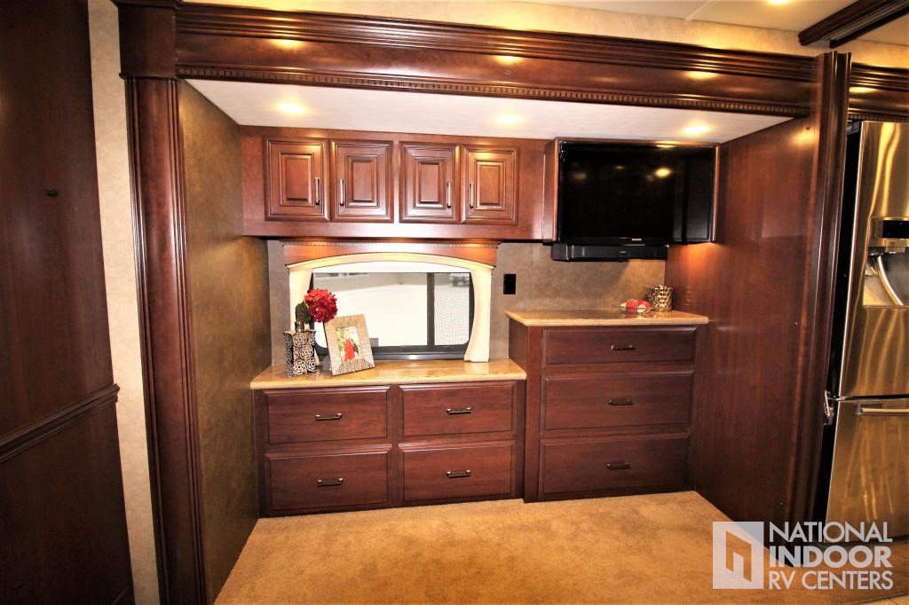 Touch-screen AM/FM/CD/DVD with Rand McNally GPS navigation, Bluetooth and 4 speakers; Sirius ready radio and tuner; CB prep with antenna; Samsung 32" LED HDTV