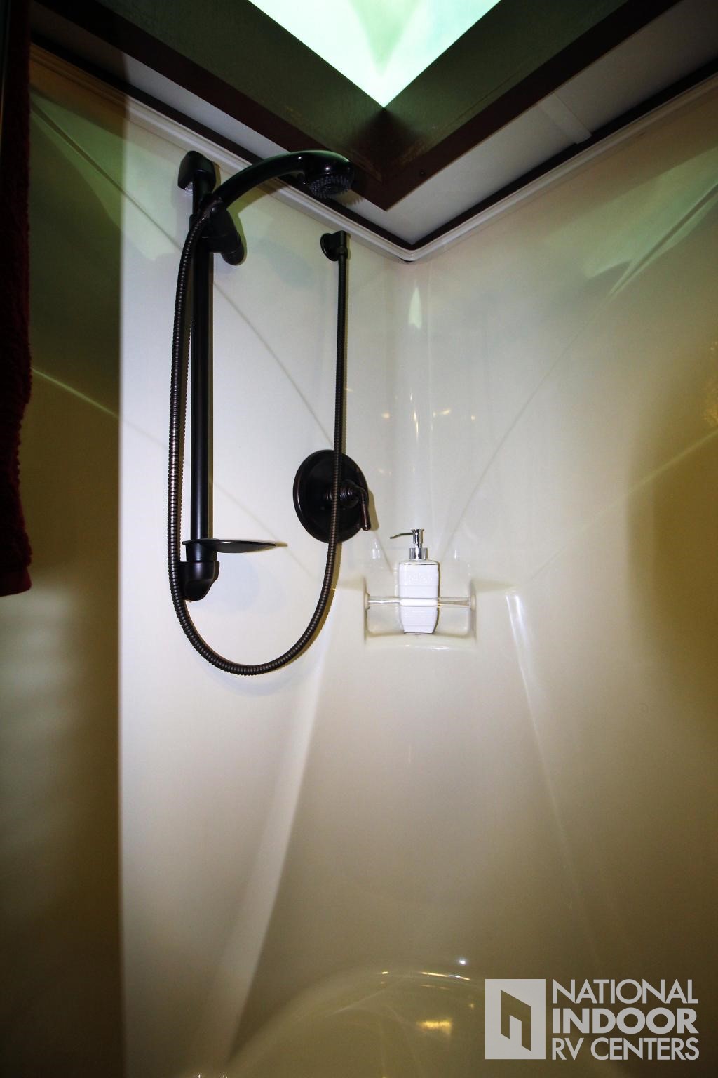 One-piece fiberglass shower with skylight