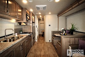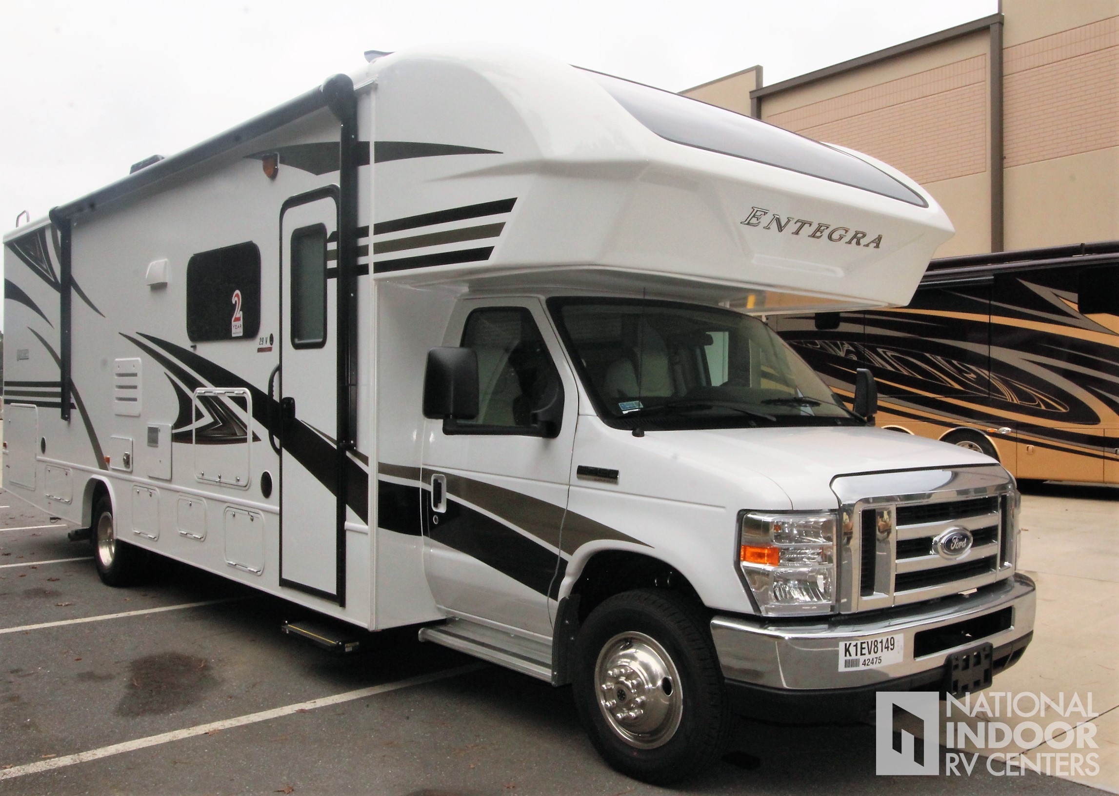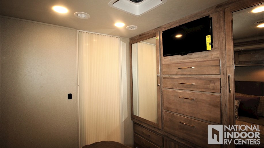 EZDRIVE; Computer-balanced driveshaft, standard front and rear stabilizer bars, Hellwig helper springs, rubber isolation body mounts, Soundstream Infotainment Dash Radio w/GPS & CD/DVD Player, One-piece seamless fiberglass front cap w/ 30"x82" front windshield, 12V electric patio awning, Black holding tank sprayer, Rear back-up camera and monitor, heated holding tanks (12V pads), 8 cu. ft. flush-mount, double-door refrigerator, 32" LED HDTV