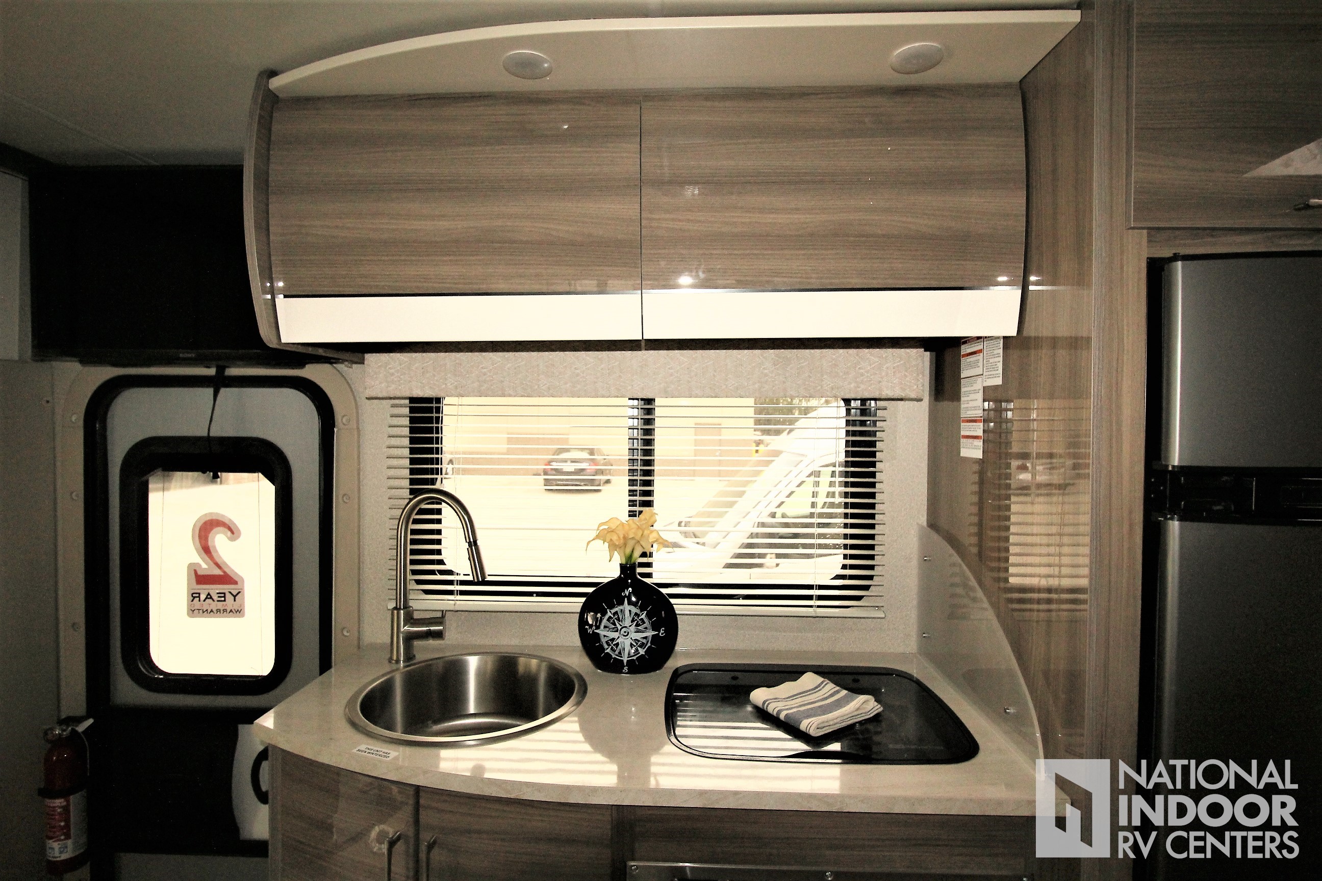 Sony Infotainment Dash Radio w/GPS, One-piece seamless fiberglass front cap, automatic electric stabilizer jacks, remote control and heated mirrors, backup camera with monitor, 12V tank heating pads, frame-less windows, Girard armless electric patio awning with LED light strip, swivel driver and passenger seats, key-less cab entry