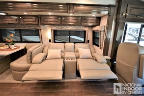 Theater seating with power recliners and fixed console